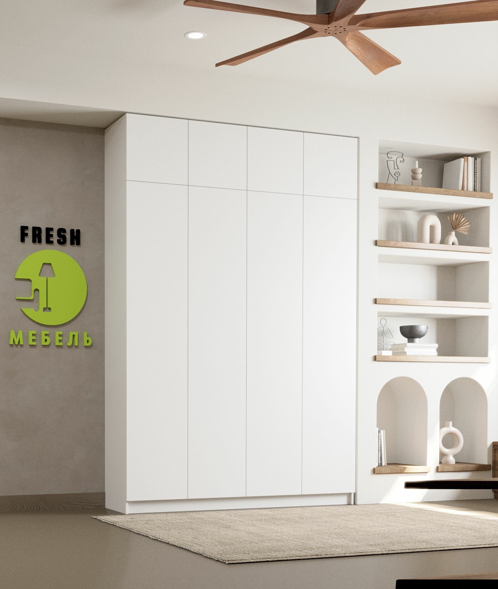 Шкаф с полками Фарелл 31, 240*60*270, белый гладкий, FRESH мебель 65 990 ₽