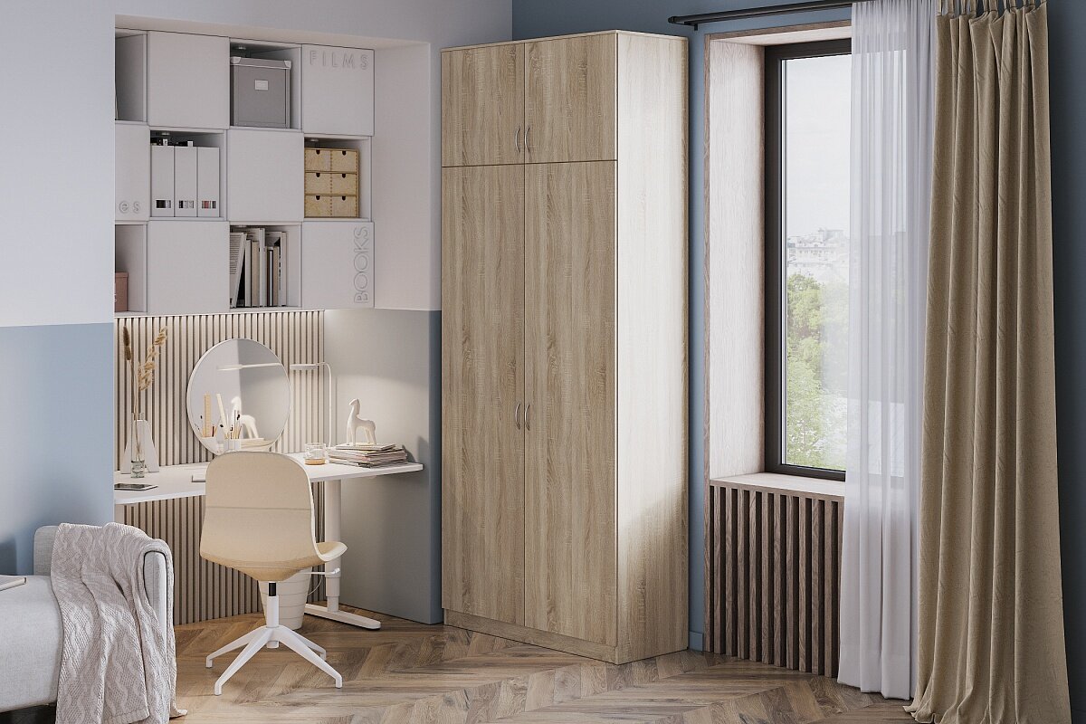 10 цен на Шкаф распашной МебельЛэнд24 Лайт-2 с антресолью Дуб Сонома 80x70x230 дуб светлый для одежды двухдверный