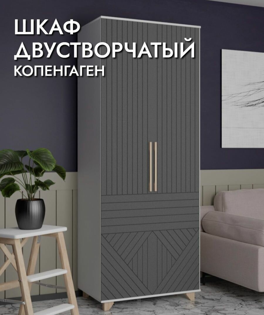 Шкаф двустворчатый Копенгаген Белый шагрень/Серый графит, 900х2100х400 мм информация: