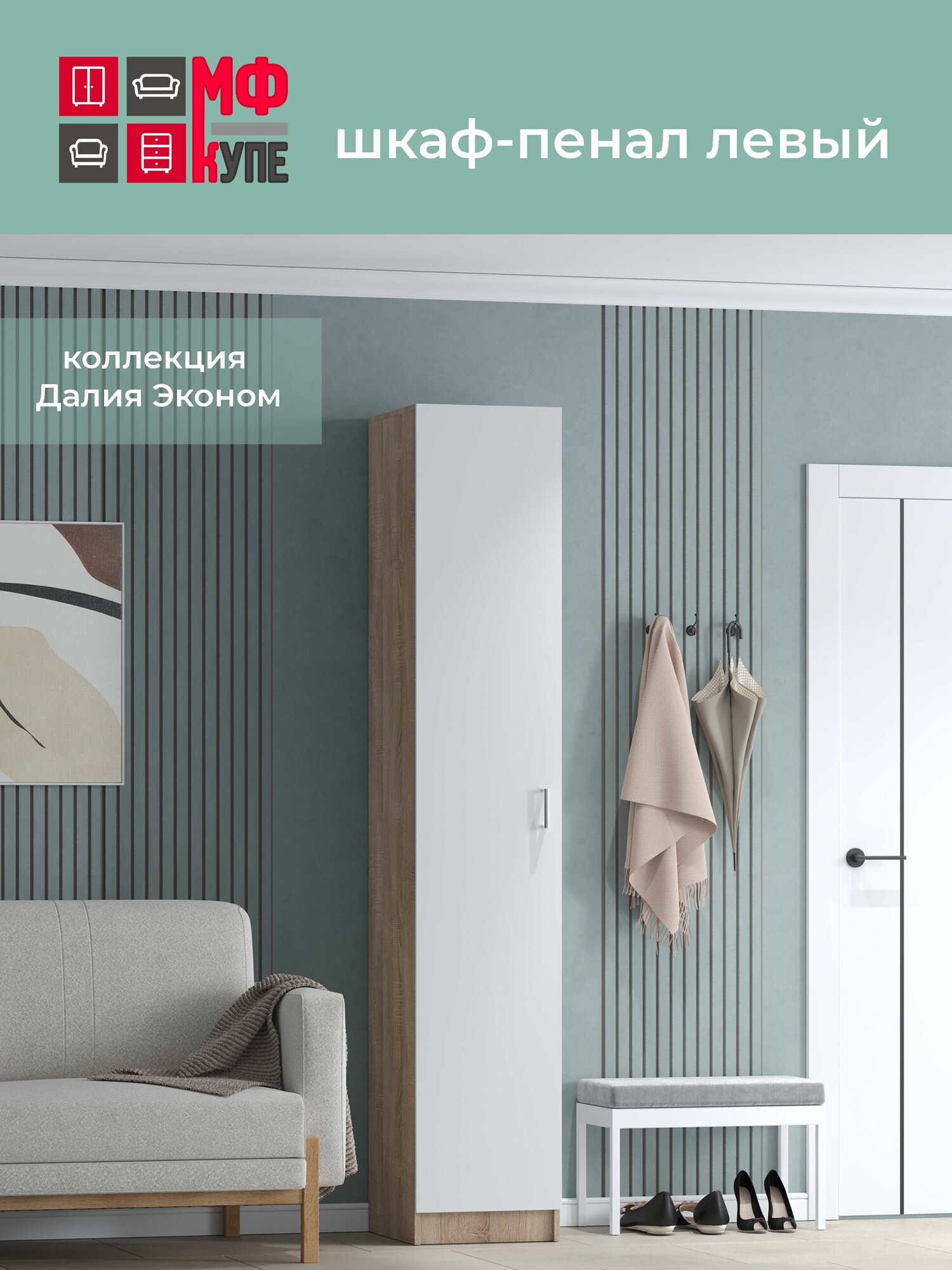 Шкаф-пенал распашной, Далия эконом левый 400-550-2000, цвет Белый-Дуб сонома наполнение платье 13 000 ₽