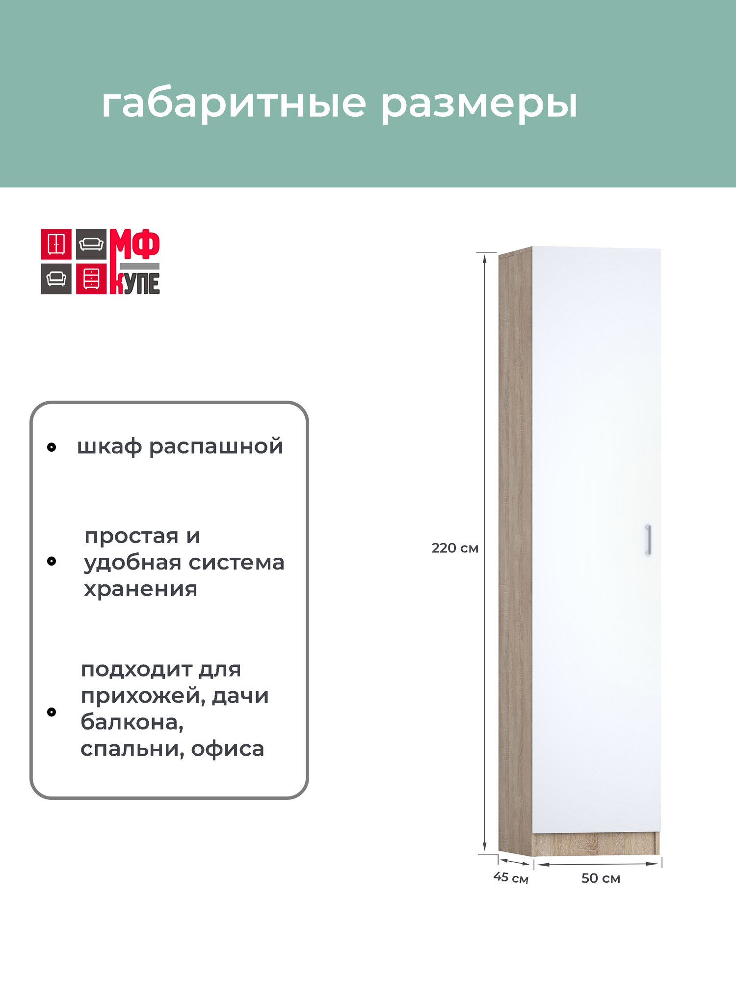 10 цен на Шкаф-пенал распашной, Далия эконом левый 500-450-2200, цвет Дуб сонома-Белый наполнение платье