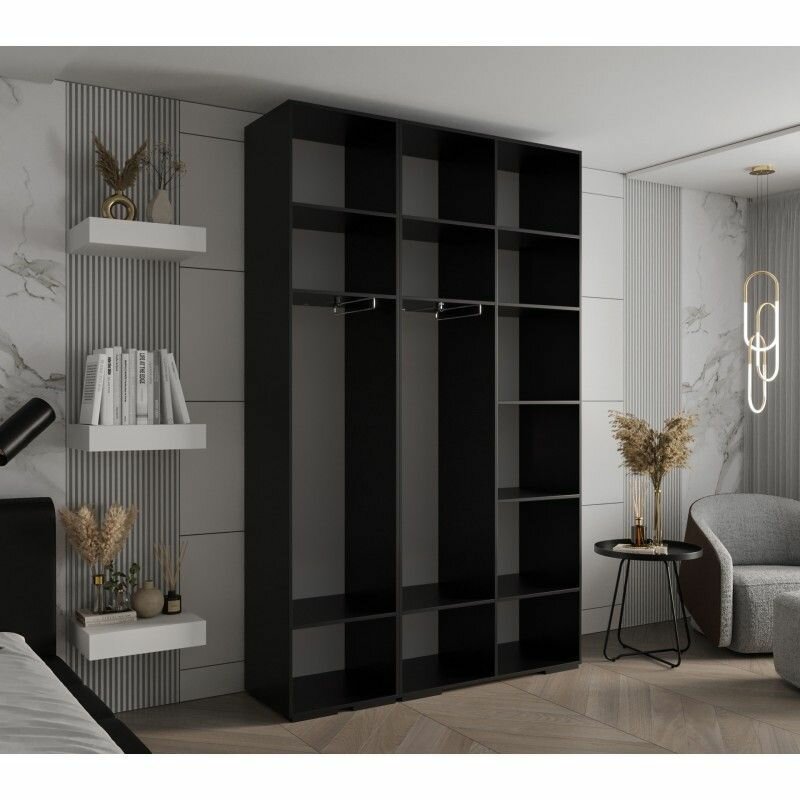 10 цен на Шкаф распашной Мори-5 Черный для одежды трёхдверный 150*220*50 Мегамебель
