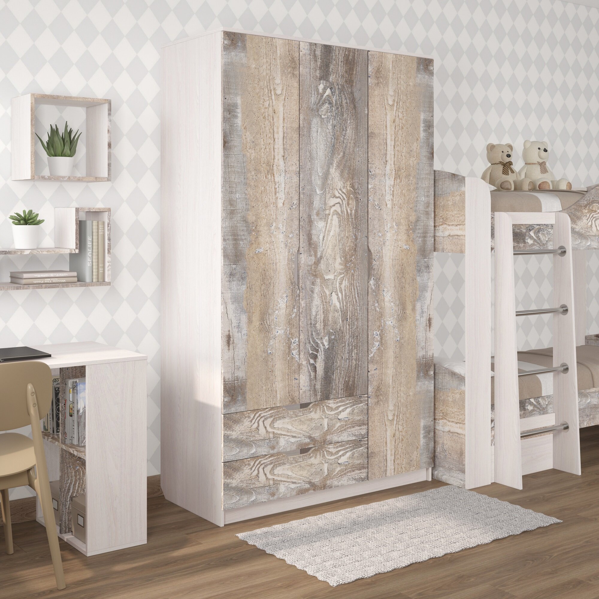 Шкаф трехдверный, с ящиками, со штангой Есэндвич Лаворо, левый 120x55х200 см (Сосна винтерберг/Бетон пайн экзотик) 29 890 ₽