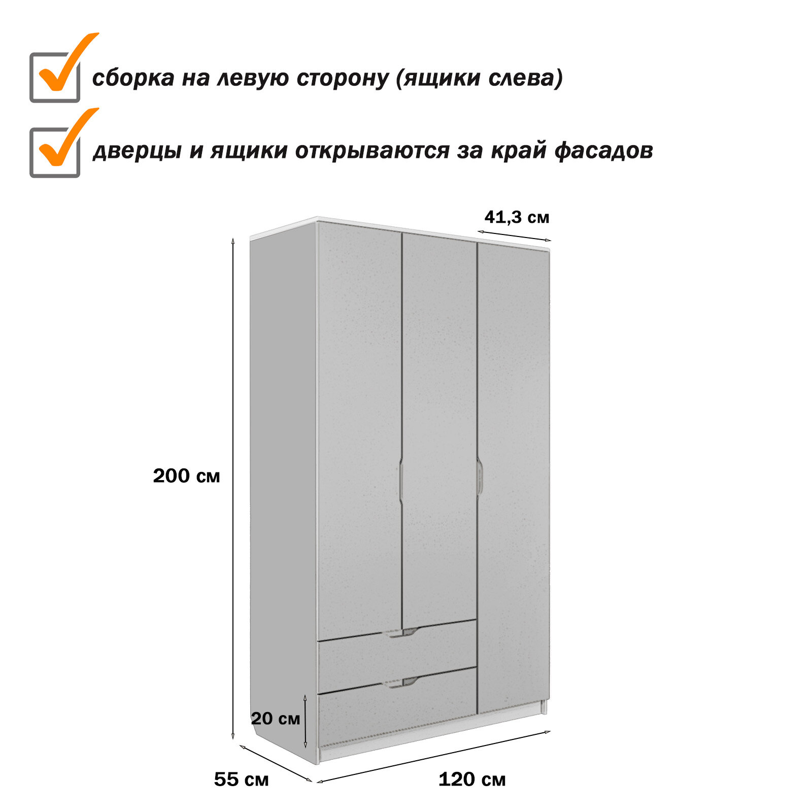 Шкаф трехдверный, с ящиками, со штангой Есэндвич Лаворо, левый 120x55х200 см (Вулканический серый) 35 590 ₽