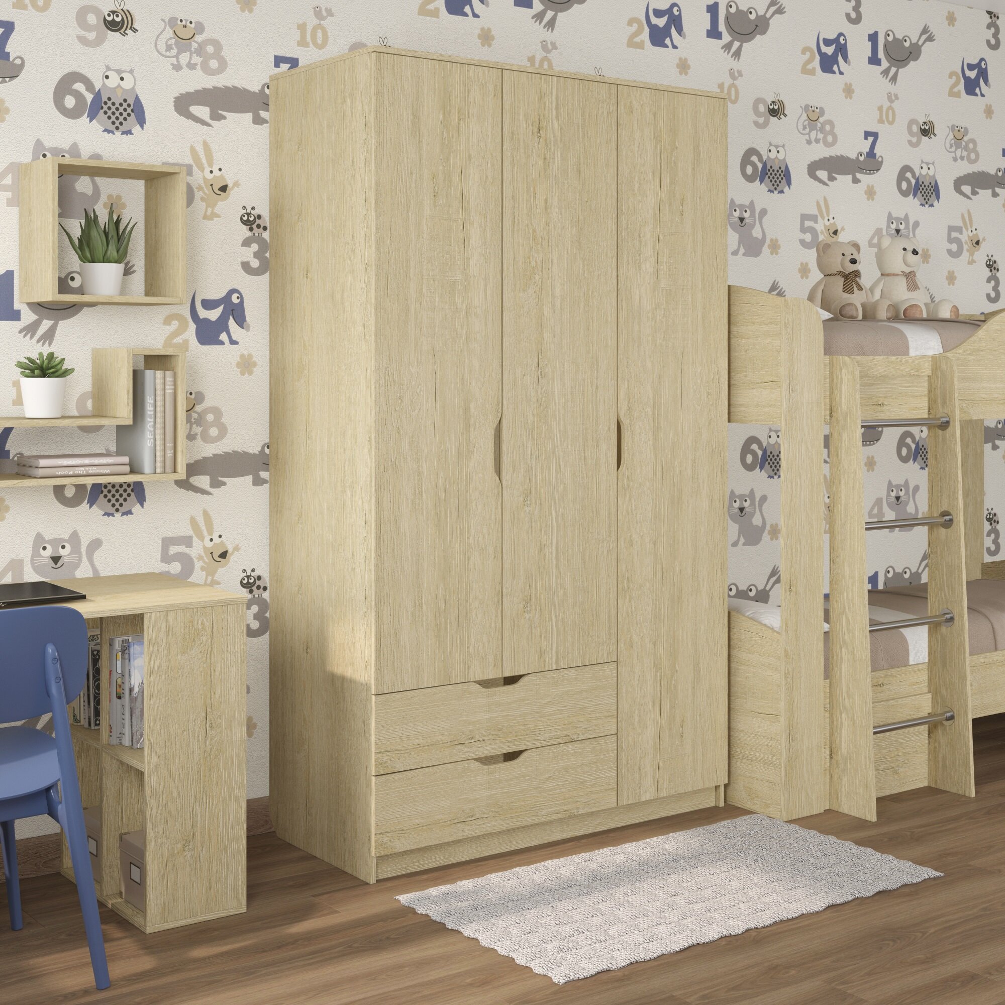 Шкаф трехдверный, с ящиками, со штангой Есэндвич Лаворо, правый 120x55х200 см (Анкор светлый) 32 890 ₽
