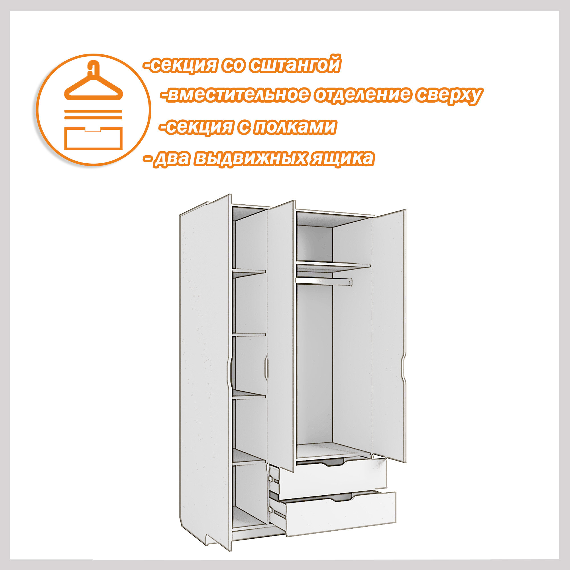 Шкаф трехдверный, с ящиками, со штангой Есэндвич Лаворо, правый 120x55х200 см (Анкор белый) 32 890 ₽