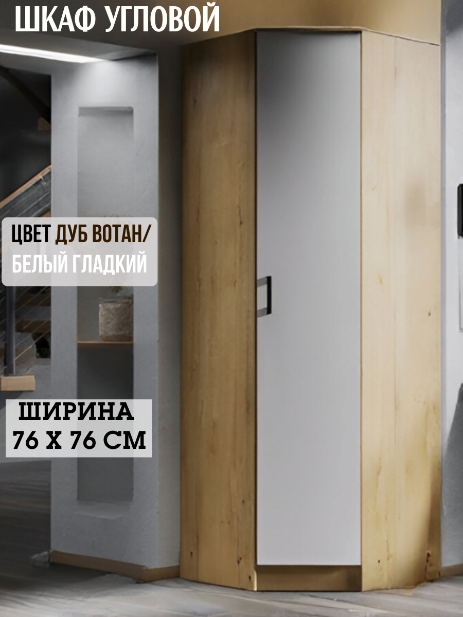 Шкаф угловой распашной, ширина 76 х 76 см, цвет дуб вотан/белый, ЛДСП информация: