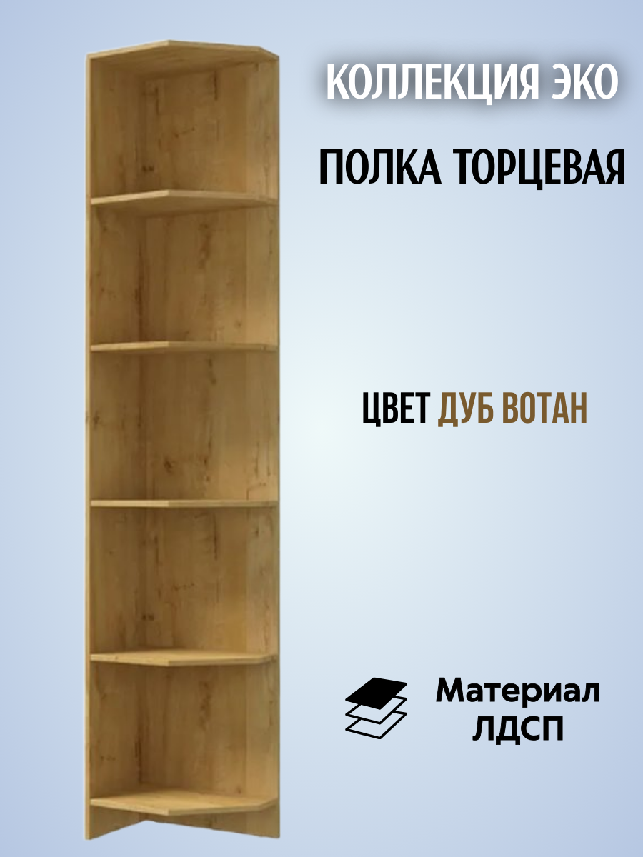 Полка открытая, стеллаж торцевой Эко, цвет дуб вотан, ЛДСП, ширина 28 х 49 см информация: