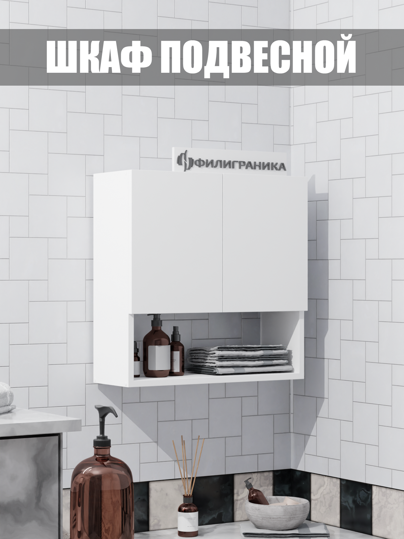 Настенный распашной шкаф на стену для кухни, филиграника, белый информация: