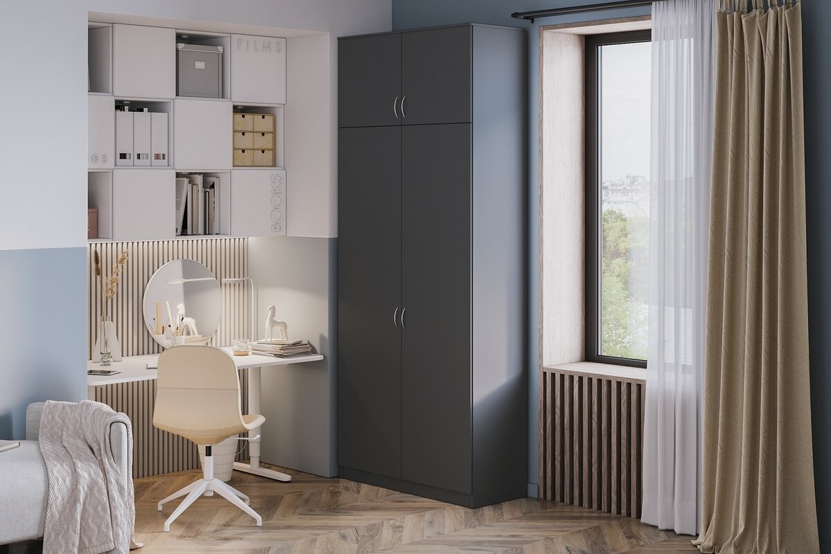 Шкаф распашной Лайт-2 с антресолью Графит для одежды двухдверный 90*230*70 Мегамебель 25 188 ₽