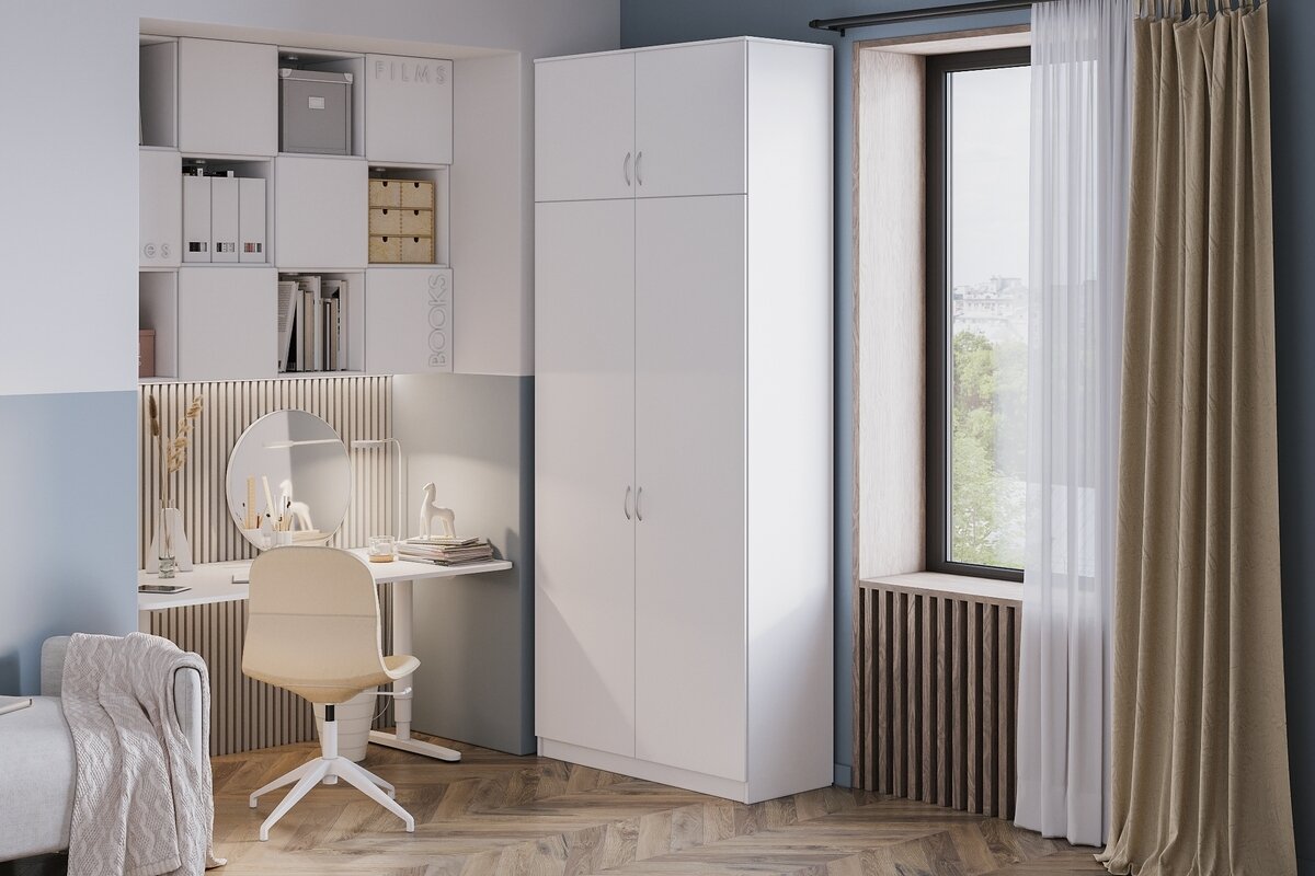 10 цен на Шкаф распашной Лайт-2 с антресолью Белый для одежды двухдверный 90*240*70 Мегамебель