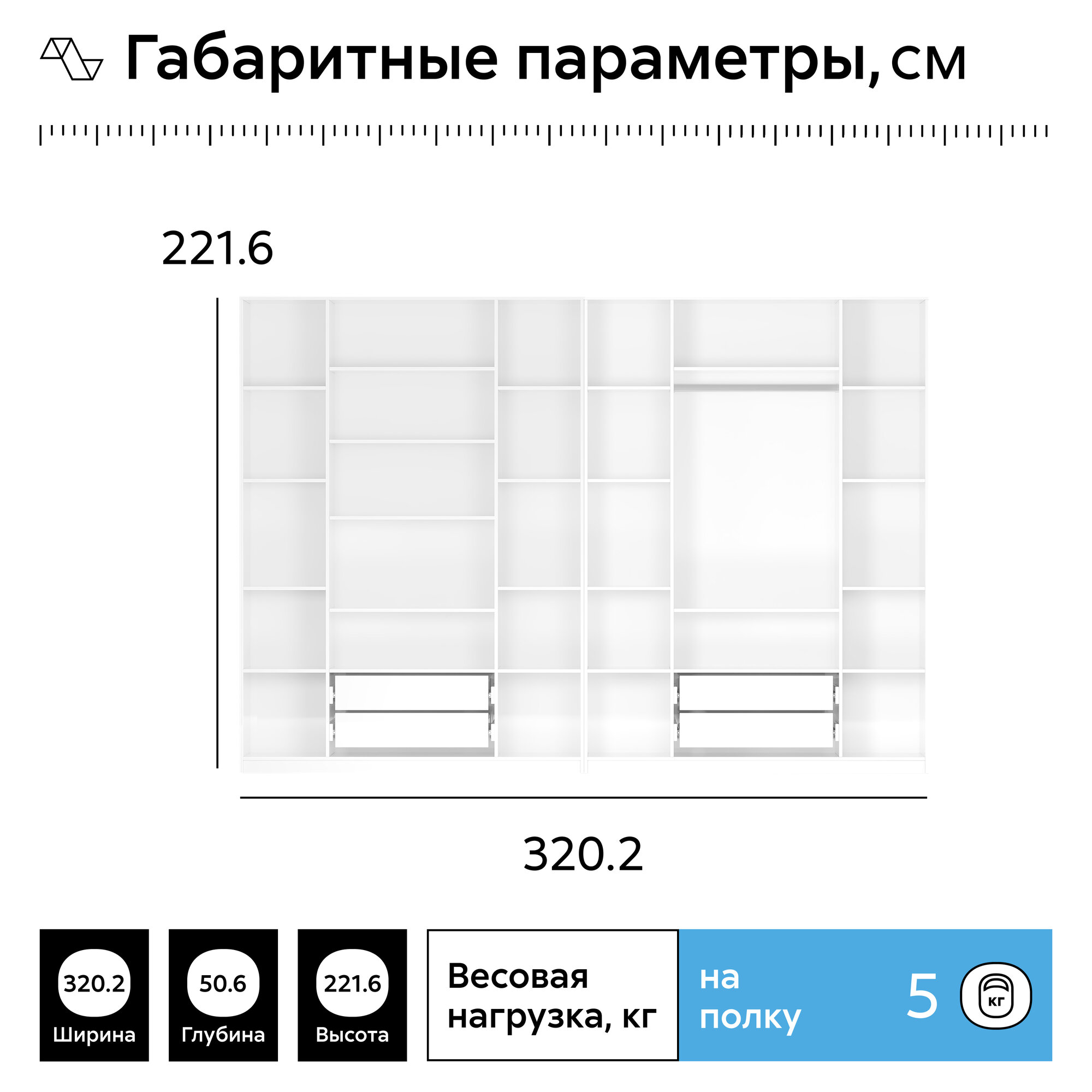 10 цен на Шкаф для одежды распашной Нонтон Луас, 2 шт, 320 см, 24 полки, 1 штанга, 4 ящика, белый текстурный