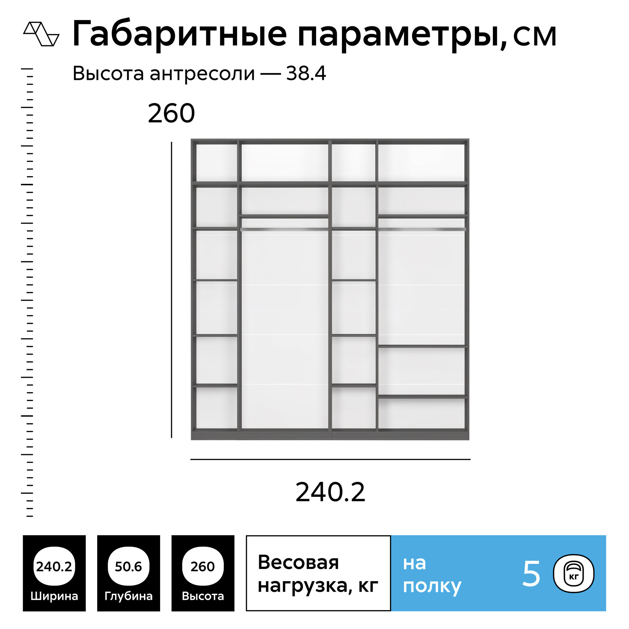 Шкафы для одежды с антресолью Нонтон Луас, 12 полок, 2 штанги, графит серый, 240 см информация: