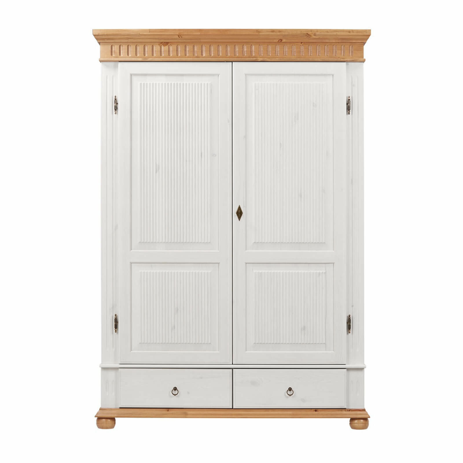 Белорусский двухдверный Шкаф из массива сосны Хельсинки 2 GT-M (N) (белый воск+антик) информация: