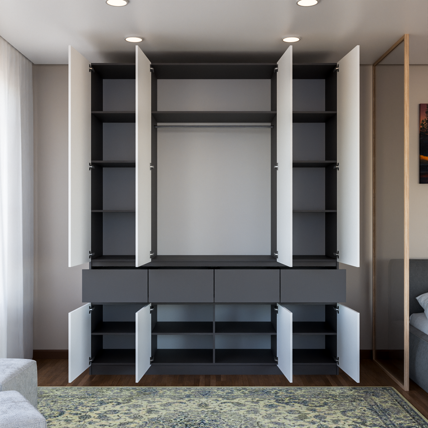 Отзывы на Шкаф распашной Легион с 4-мя выдвижными ящиками | Корпус ЛДСП Графит/Фасад ЛДСП Белый