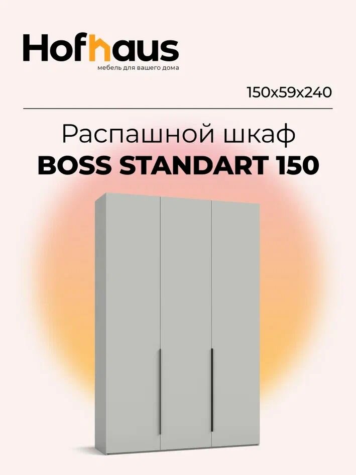 Отзывы на Шкаф для одежды BOSS STANDART 150, 3-дверный, распашной, цвет шиншилла серая, 150x59x240 см