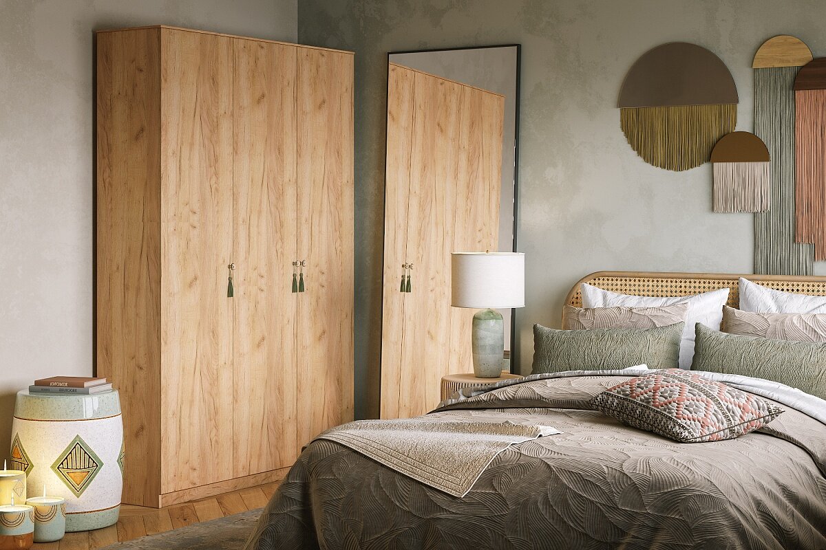 Шкаф распашной МебельЛэнд24 Монтана - 3 Крафт Золотой 120x60x220 дуб светлый для одежды трехдверный 32 490 ₽