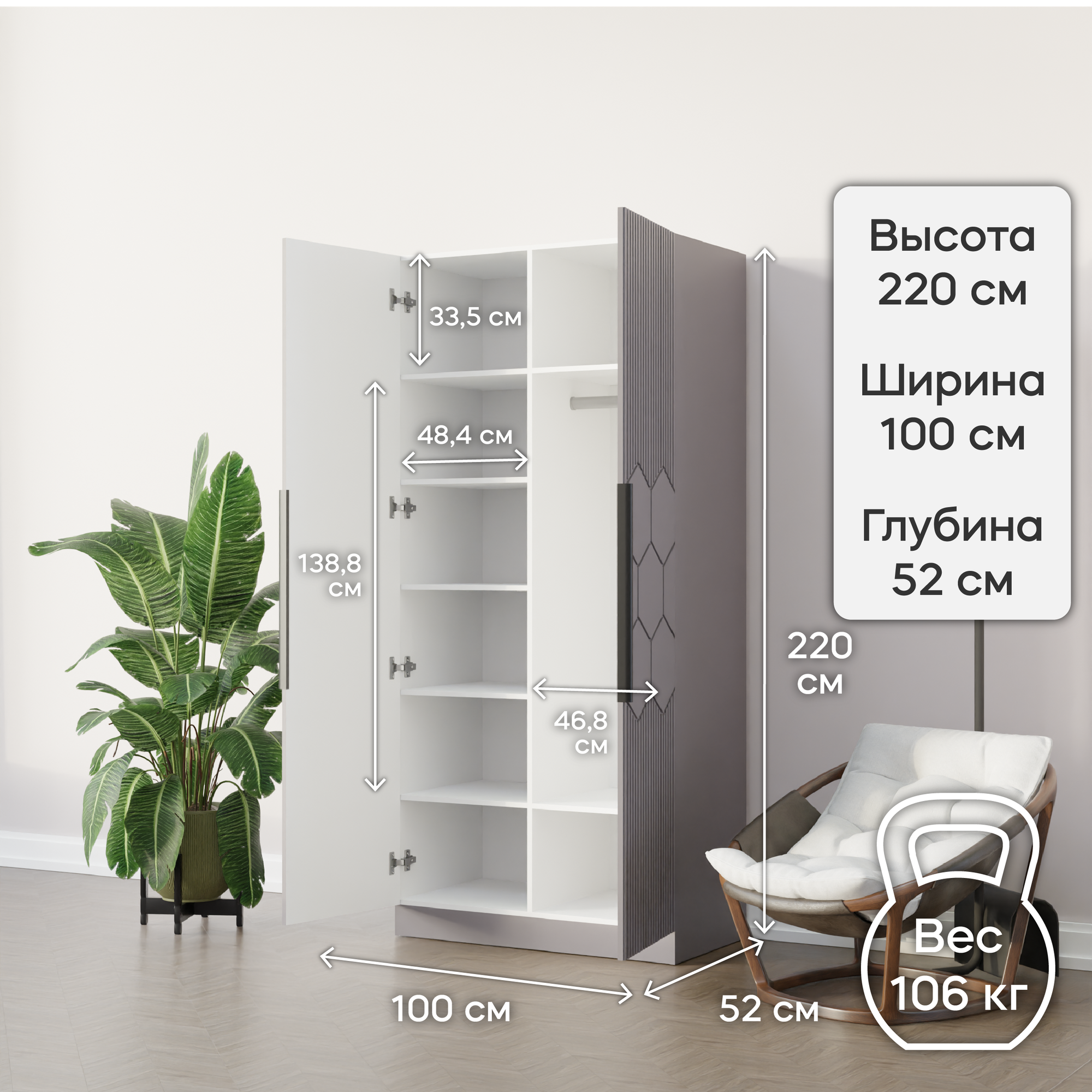 Шкаф LAERA line, распашной, с доводчиками, для дома, 100х52х220см 37 000 ₽