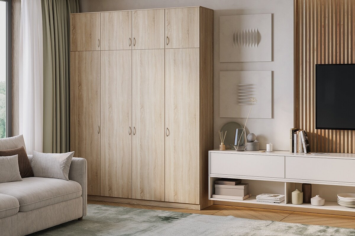 Шкаф распашной МебельЛэнд24 Лайт-4 с антресолью Дуб Сонома 210x60x220 дуб светлый для одежды четырехдверный 42 290 ₽