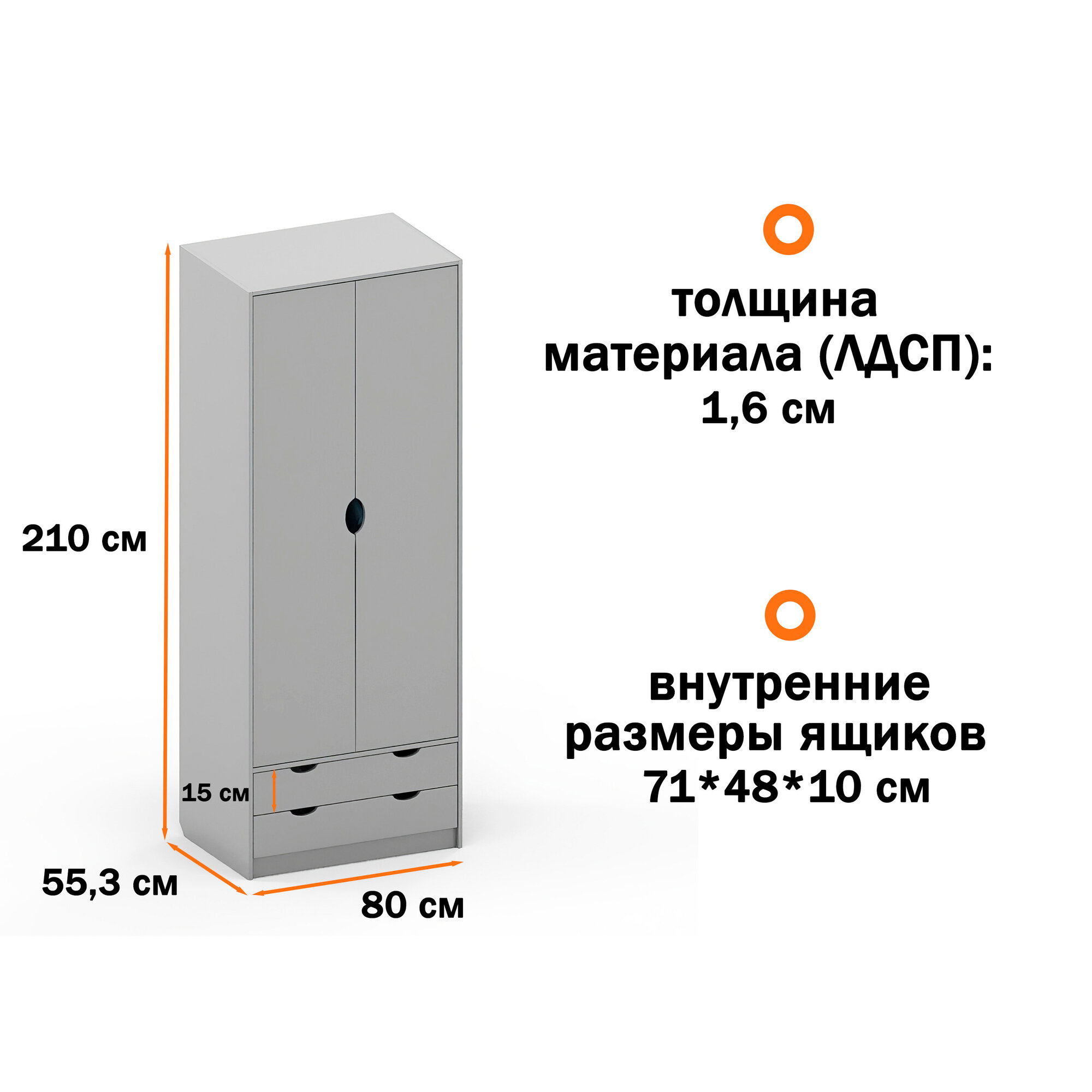 Отзывы на Шкаф двухстворчатый распашной, с ящиками, со штангой Grand 5 Лаворо 80x55х210 см (Венге/Дуб Вотан)
