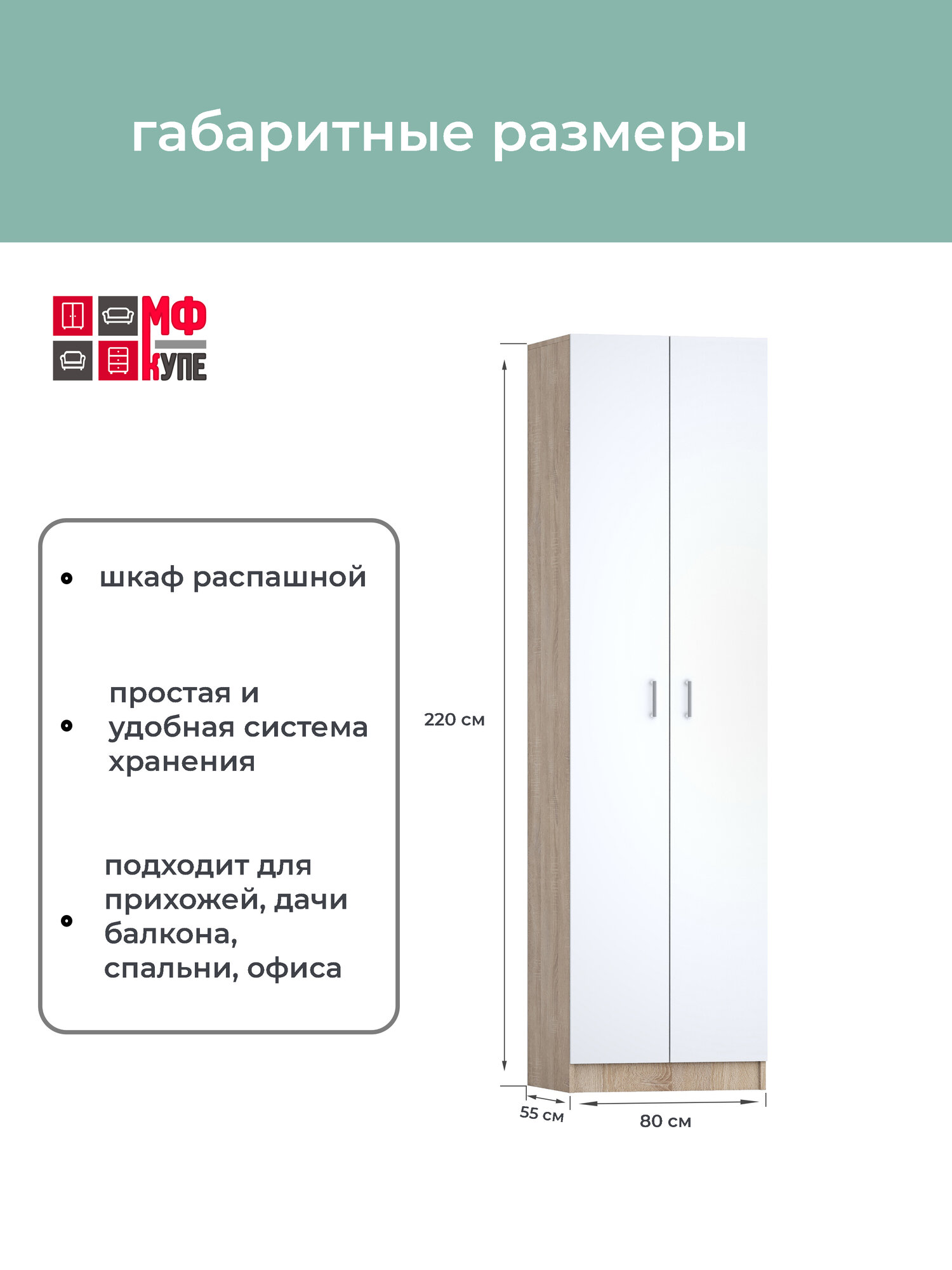 Шкаф двухдверный распашной, Далия эконом 2 800-550-2200, цвет Дуб сонома-Белый наполнение белье информация: