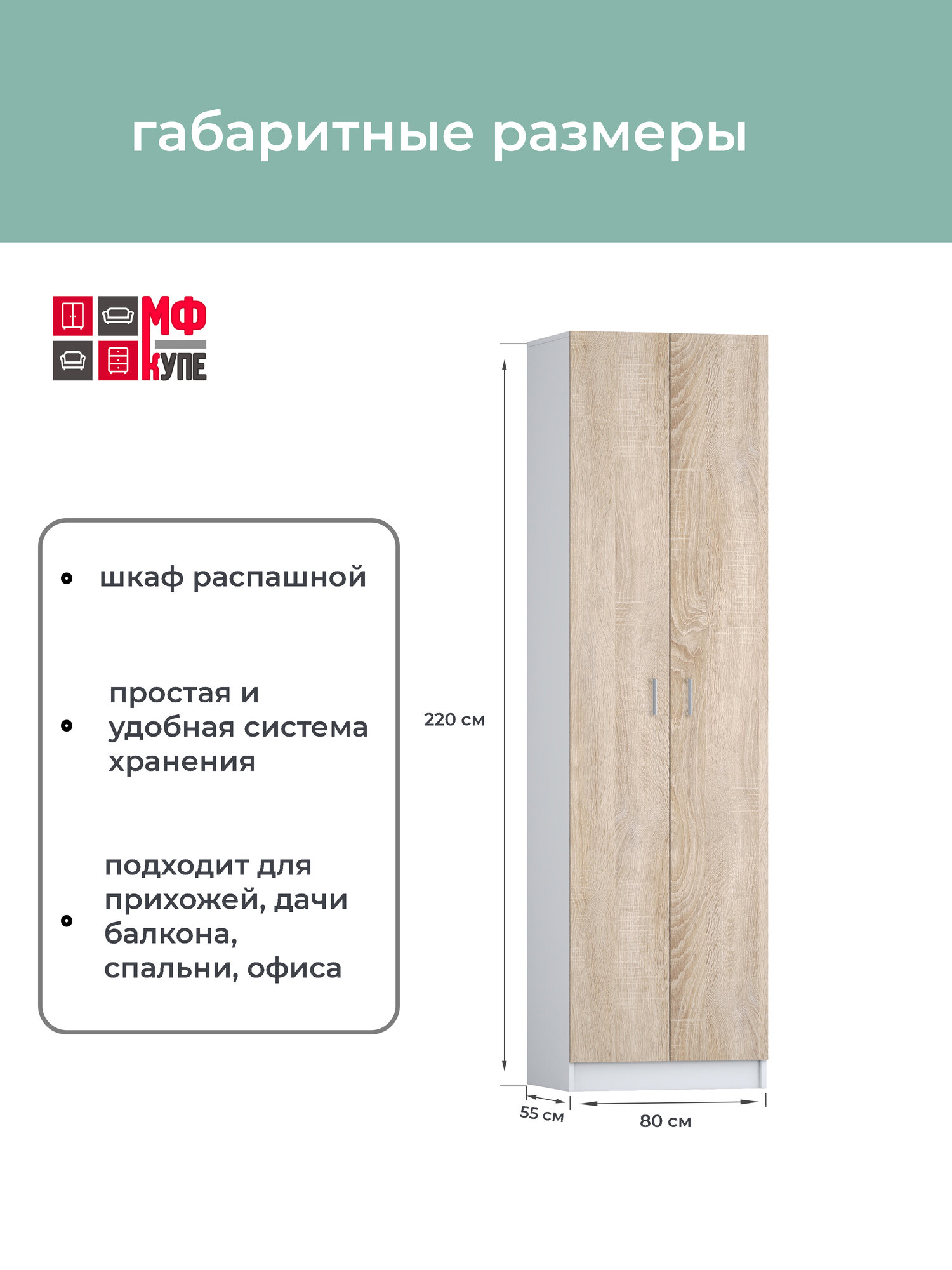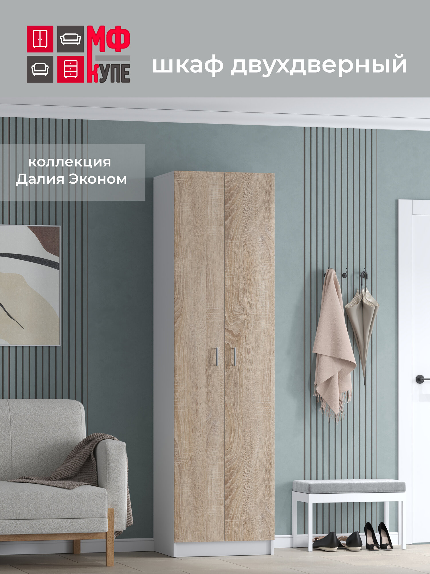 Отзывы на Шкаф двухдверный распашной, Далия эконом 2 800-550-2200, цвет Белый-Дуб сонома наполнение белье