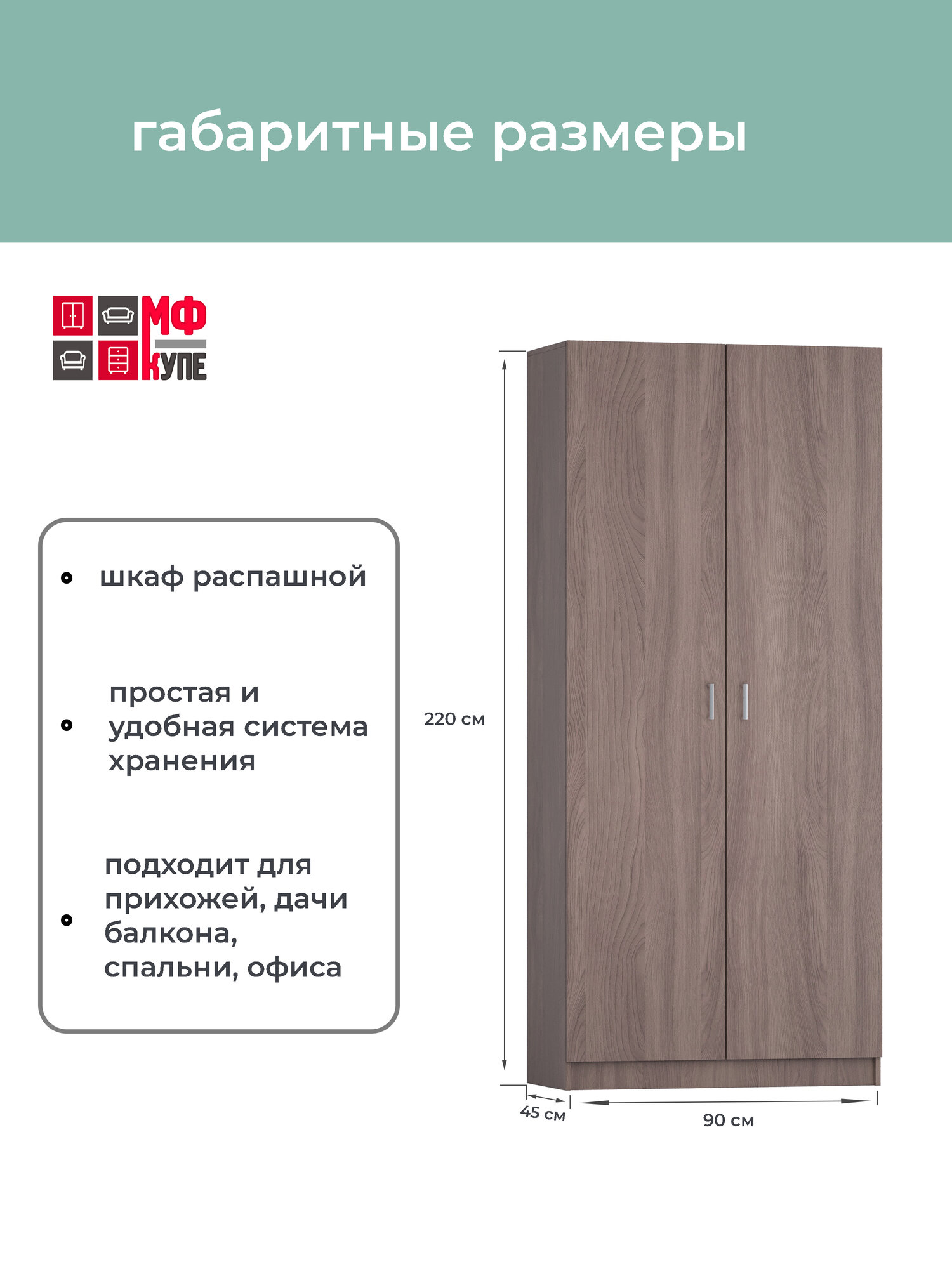 Шкаф двухдверный распашной, Далия эконом 2 900-450-2200, цвет Ясень шимо темный наполнение белье информация:
