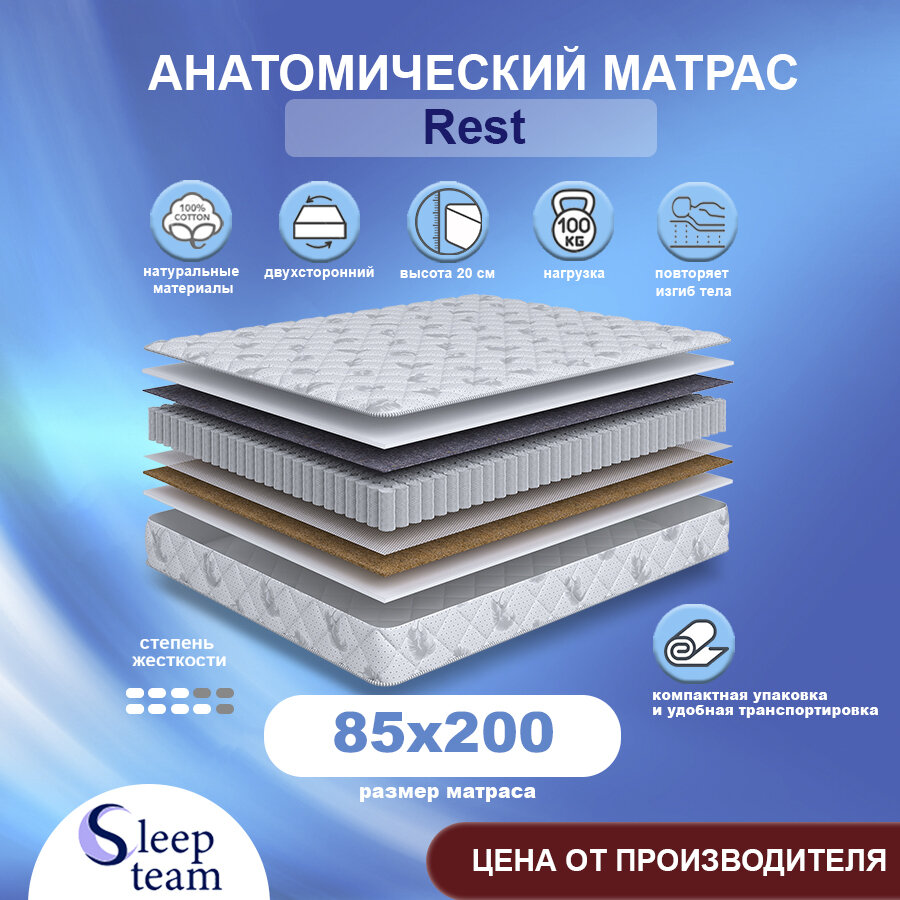 Матрас детский пружинный SleepTeam Rest 85х200, с независимыми пружинами, высота 20 см, односпальный информация: