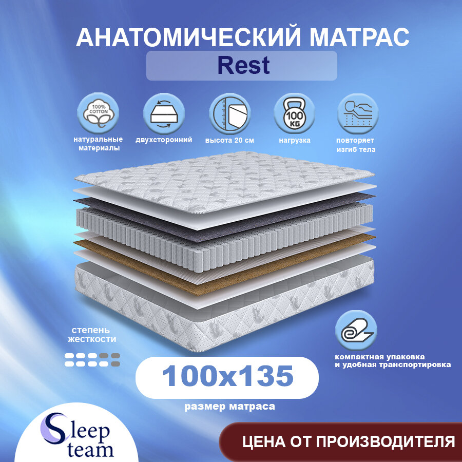 Матрас пружинный SleepTeam Rest 100х135, с независимыми пружинами, высота 20 см, односпальный информация: