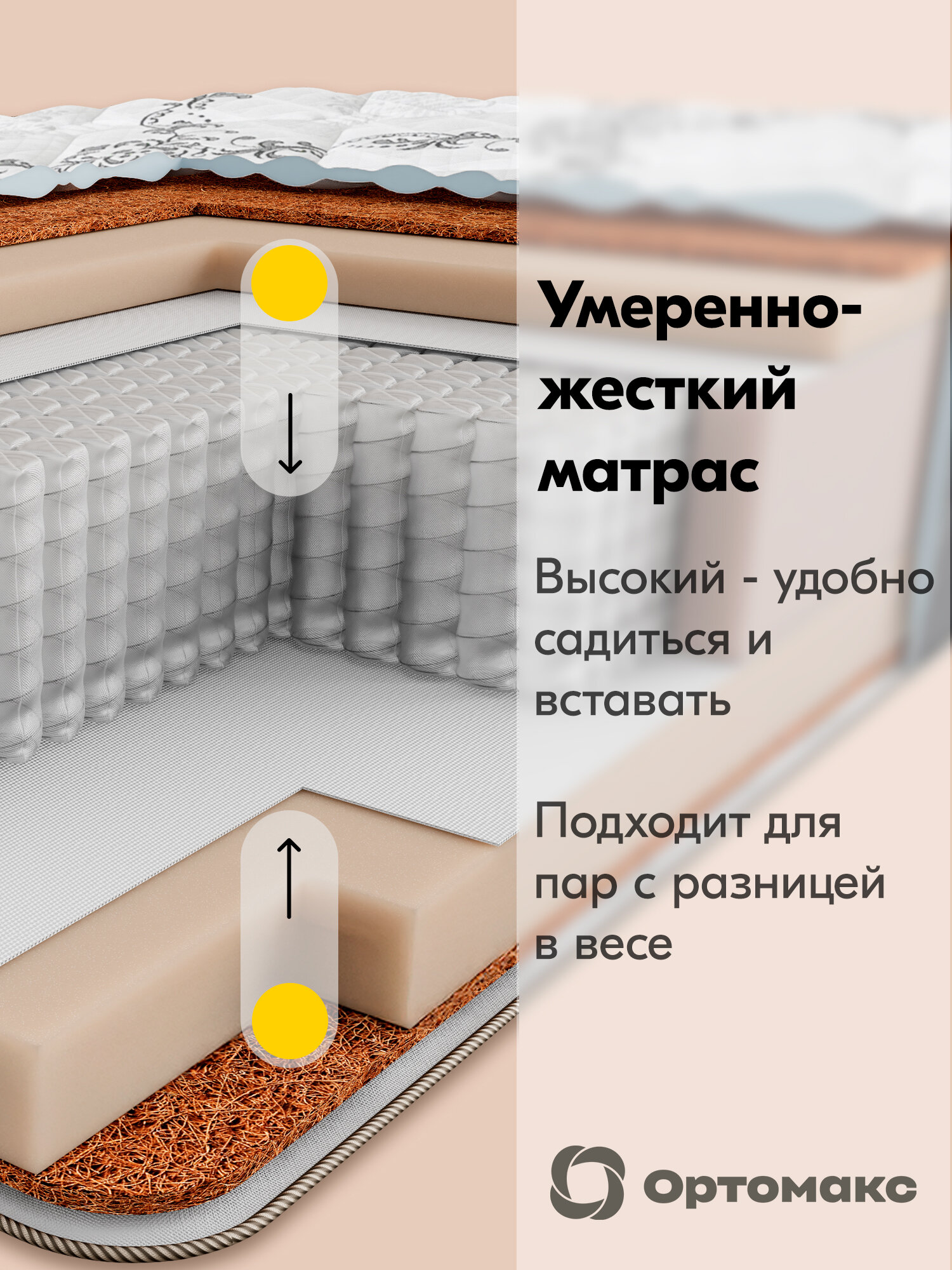 Фабрика Сна Матрас EDMOND, независимые пружины, кокос, средняя жесткость, анатомический, 90х200 см