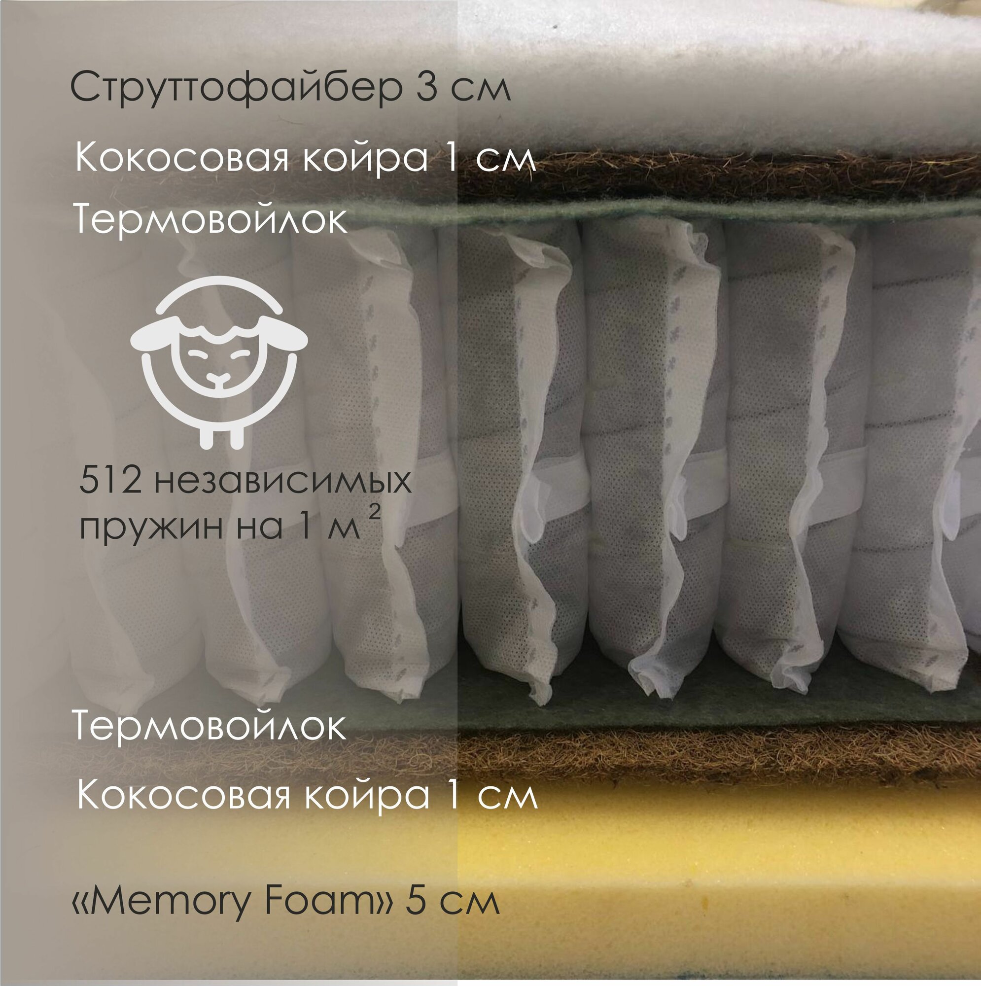 Фабрика Сна Матрас EDMOND, независимые пружины, кокос, средняя жесткость, анатомический, 90х200 см