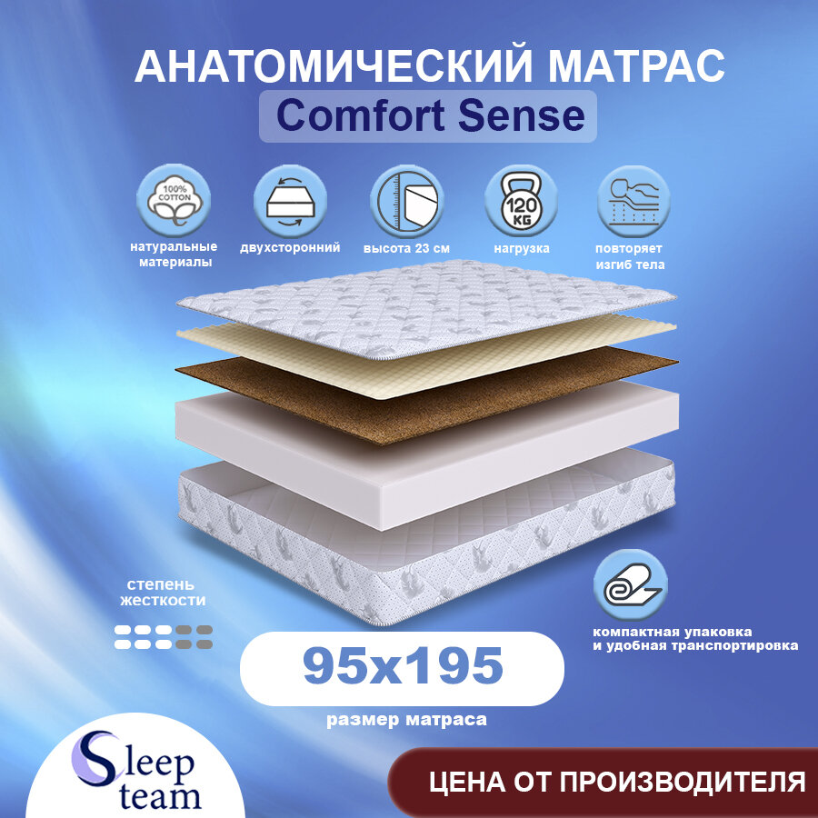 Матрас SleepTeam Comfort Sense 95х195, для кровати, высота 23 см, беспружинный с массажным эффектом, односпальный информация: