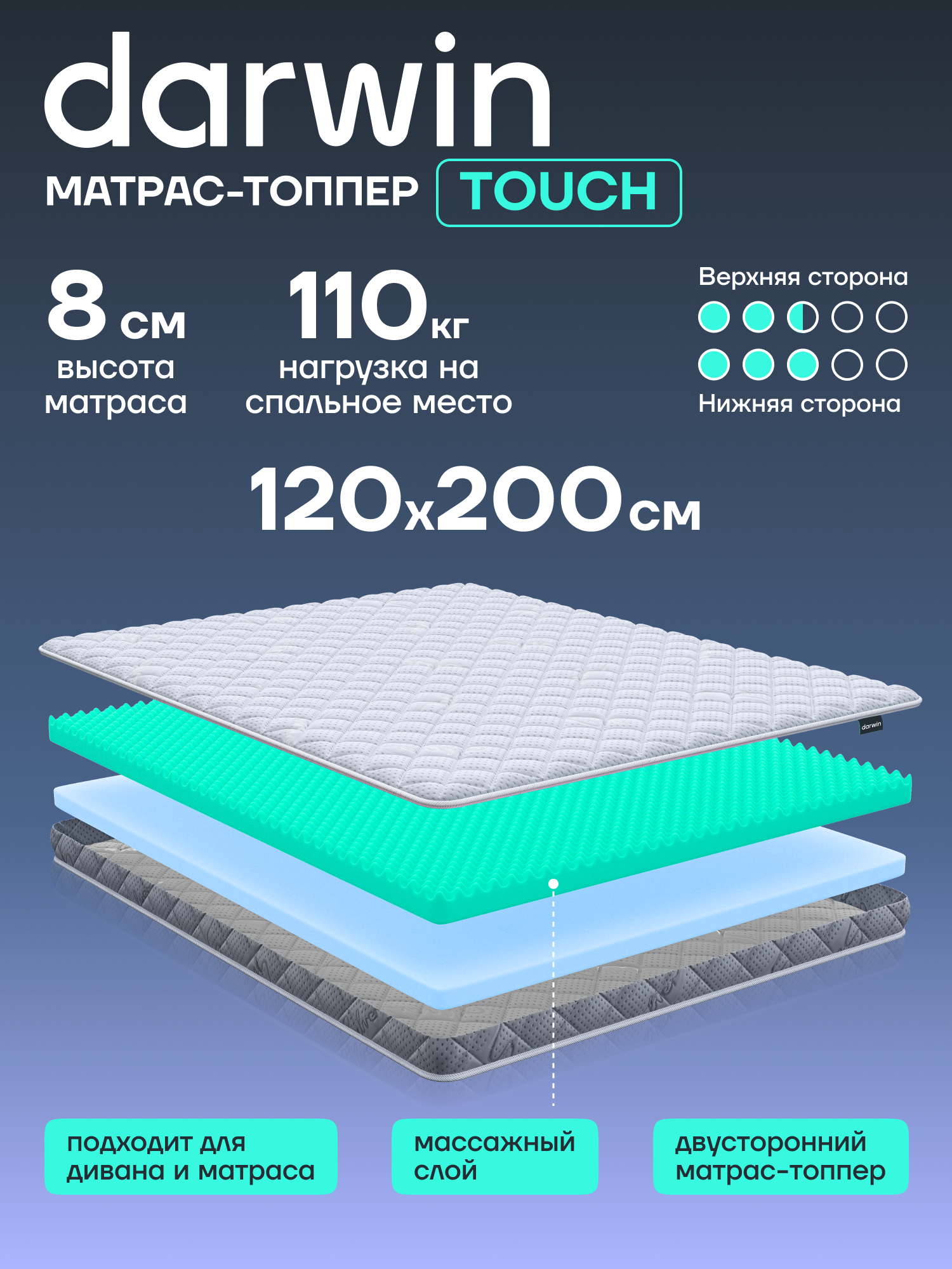 Матрас-топпер Darwin Massage 120х200 см, двухсторонний, с массажным эффектом, анатомический, высота 5 см 5 990 ₽