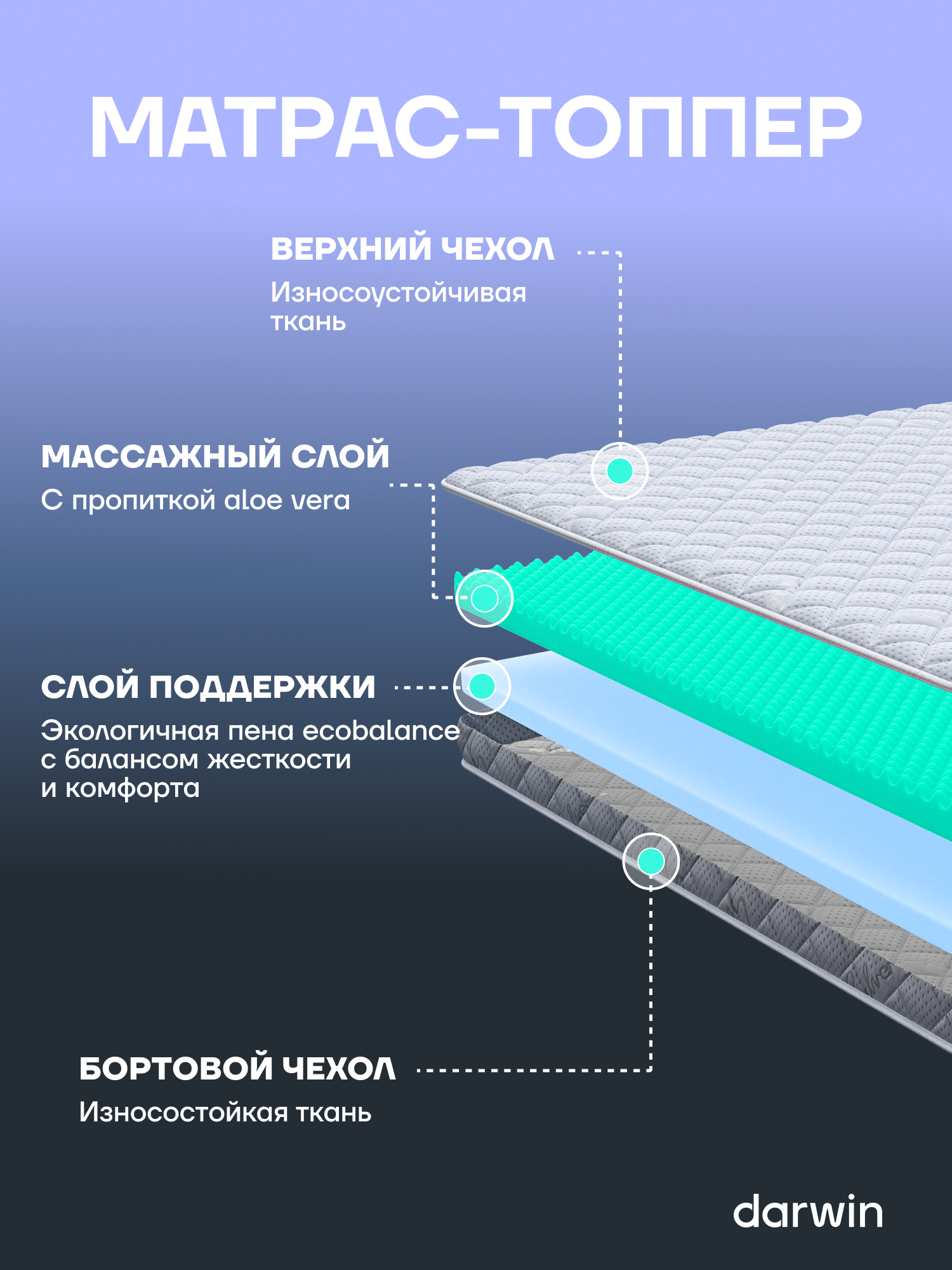 Матрас-топпер Darwin Top 160х200 см двухсторонний, анатомический, высота 4 см 7 490 ₽