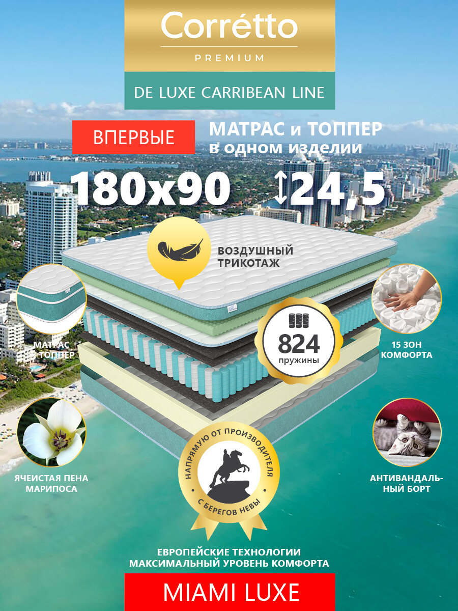 Отзывы на Матрас на кровать ортопедический пружинный Premium Corretto Miami Luxe 180X90