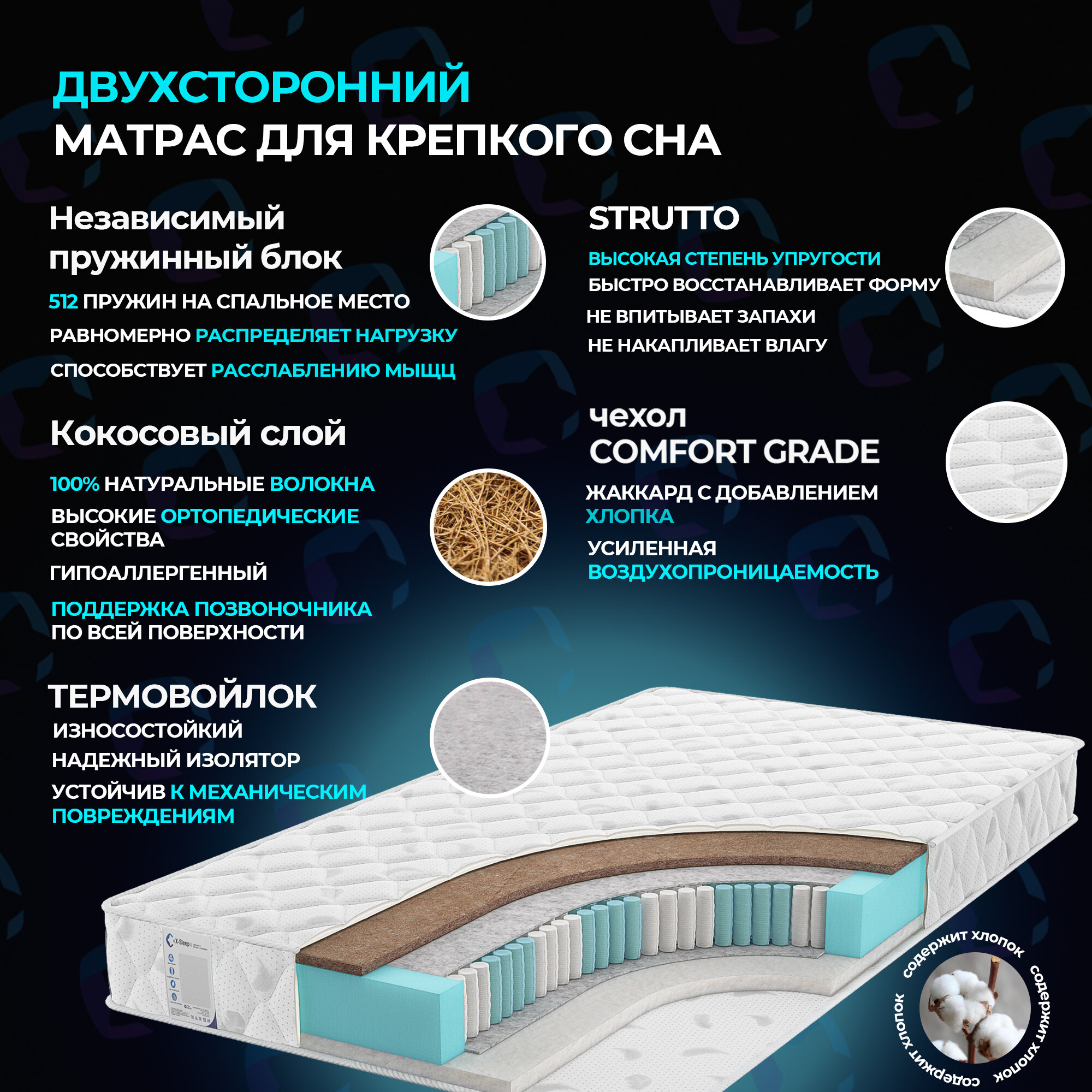 Фабрика Сна Матрас EDMOND, независимые пружины, кокос, средняя жесткость, анатомический, 90х200 см