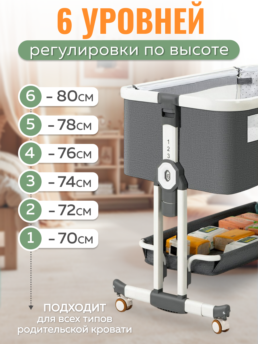 10 цен на Детская кроватка серая , приставная, овальной формы, для новорожденных