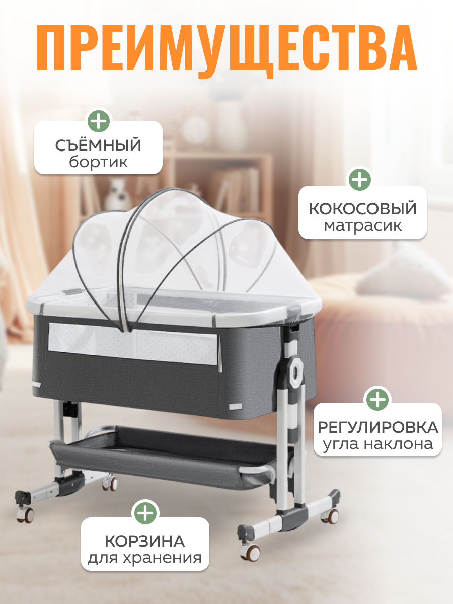 Характиристики этого товара не найдены!Отзывы на Детская кроватка серая , приставная, овальной формы, для новорожденных