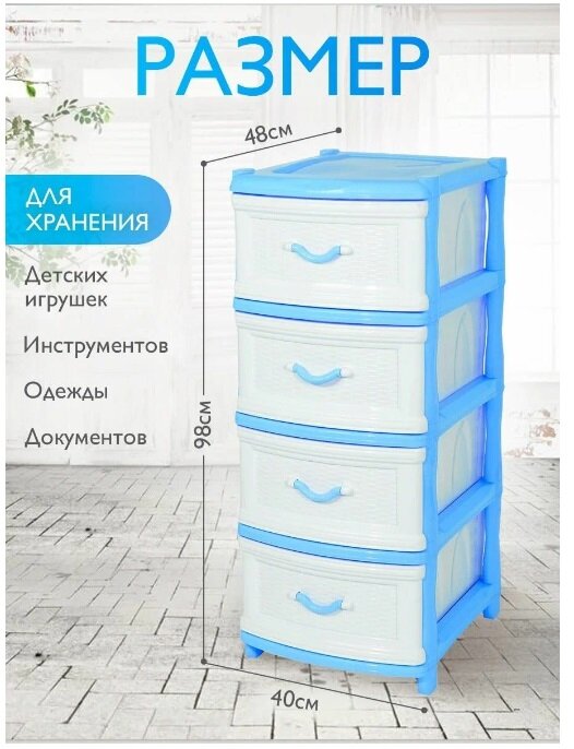 Комод elfplast "Классика" 4-х секционный для вещей и игрушек пластиковый с ящиками, (белый/голубой) 068 информация: