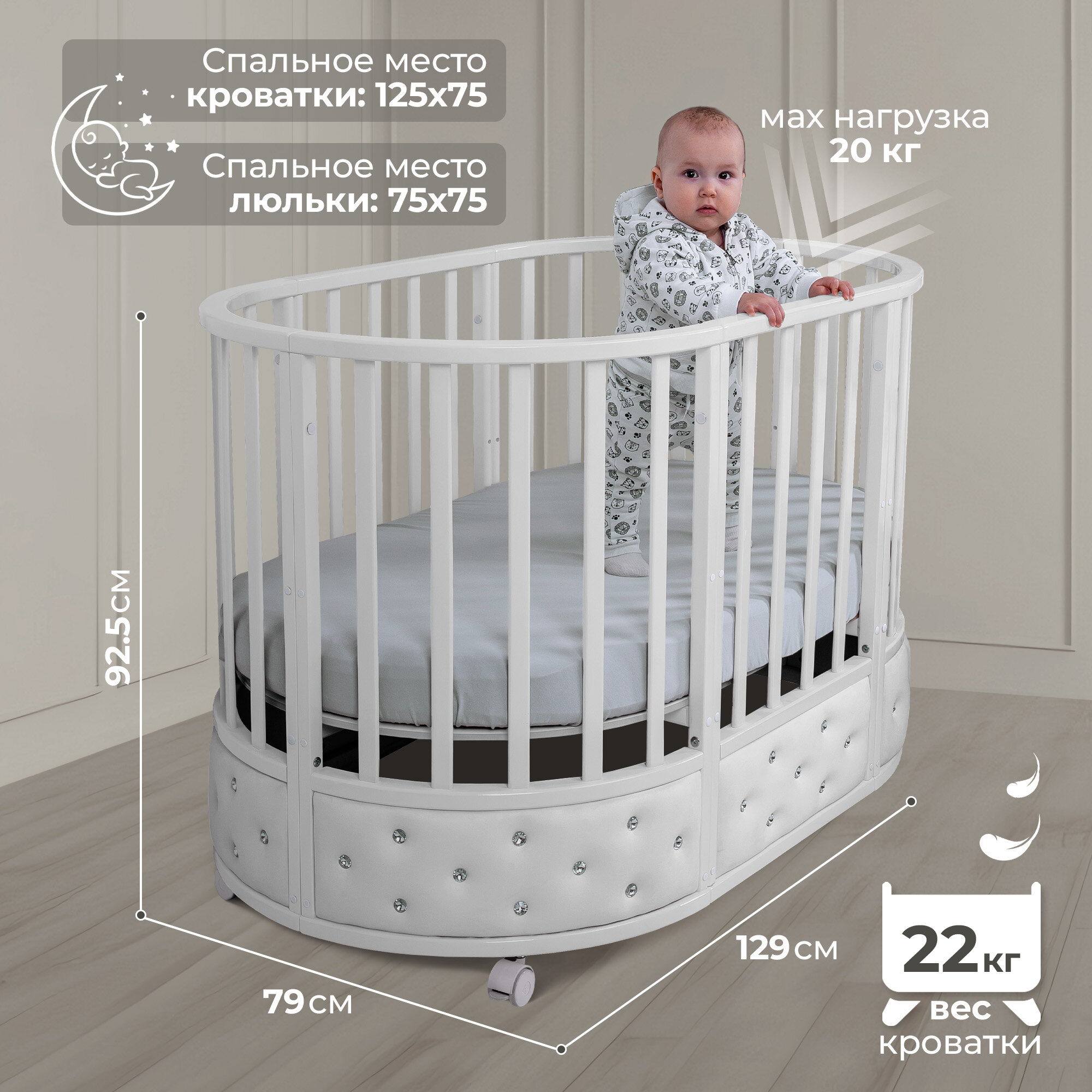 Кроватка-трансформер 7в1 Sweet Baby Brillantezza на колесах Белая информация: