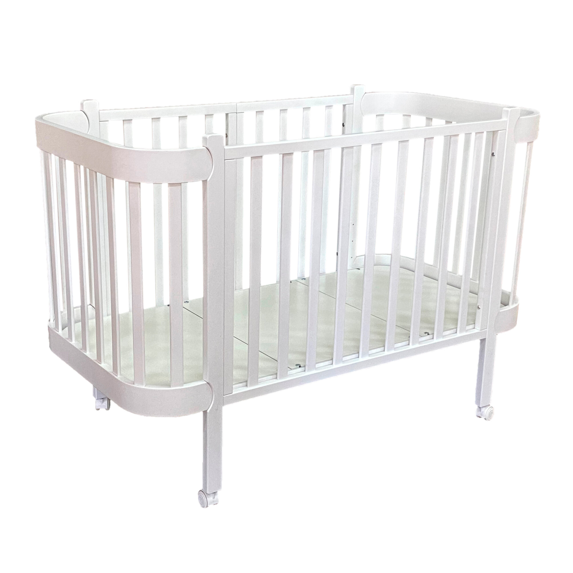 Кроватка детская трансформер для новорожденного Indigo Омега 6 в 1 с поперечным маятником, массив березы, белый