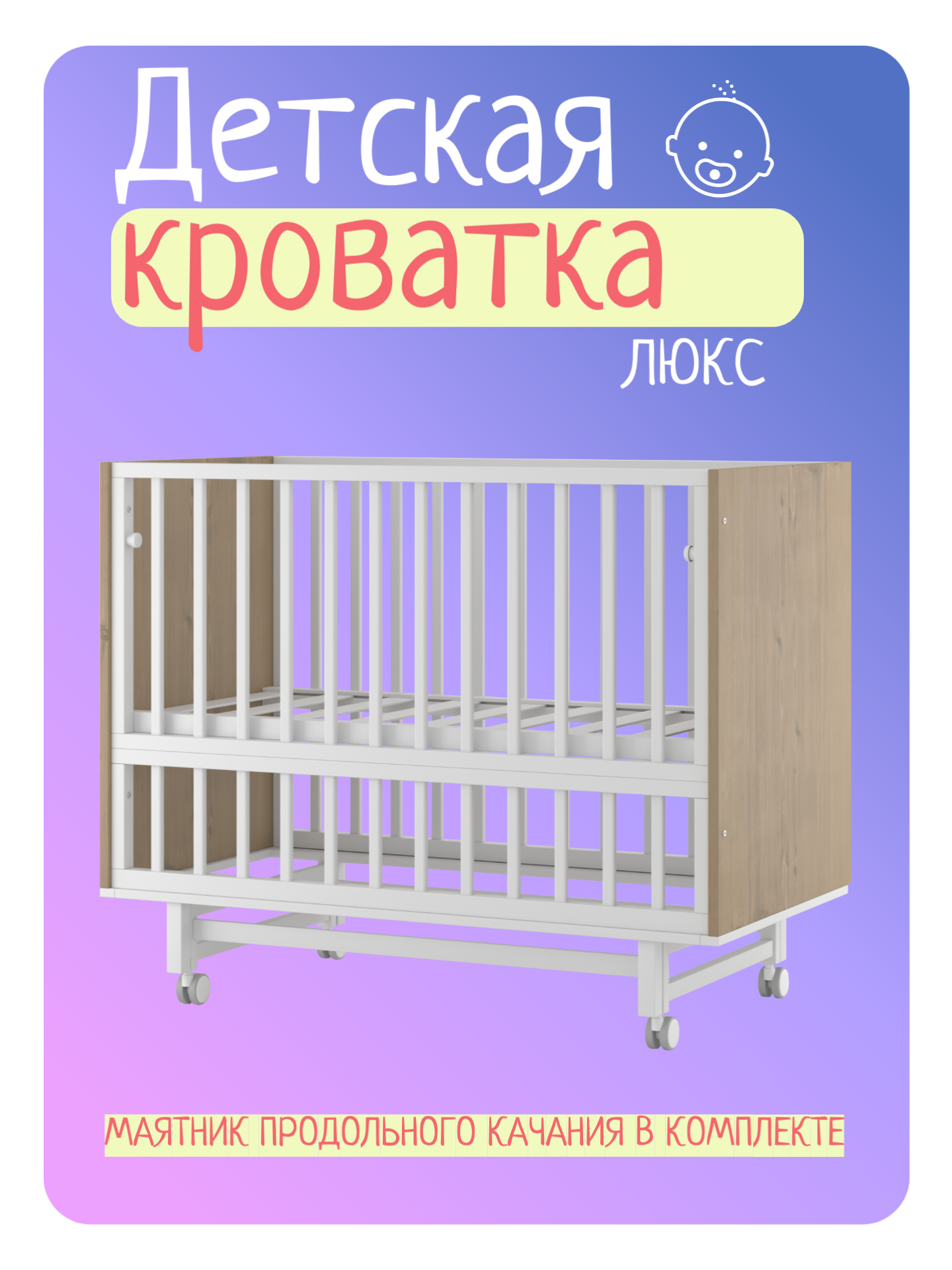 Кроватка для новорожденных Кембридж продольный маятник цвет белый/ дуб информация: