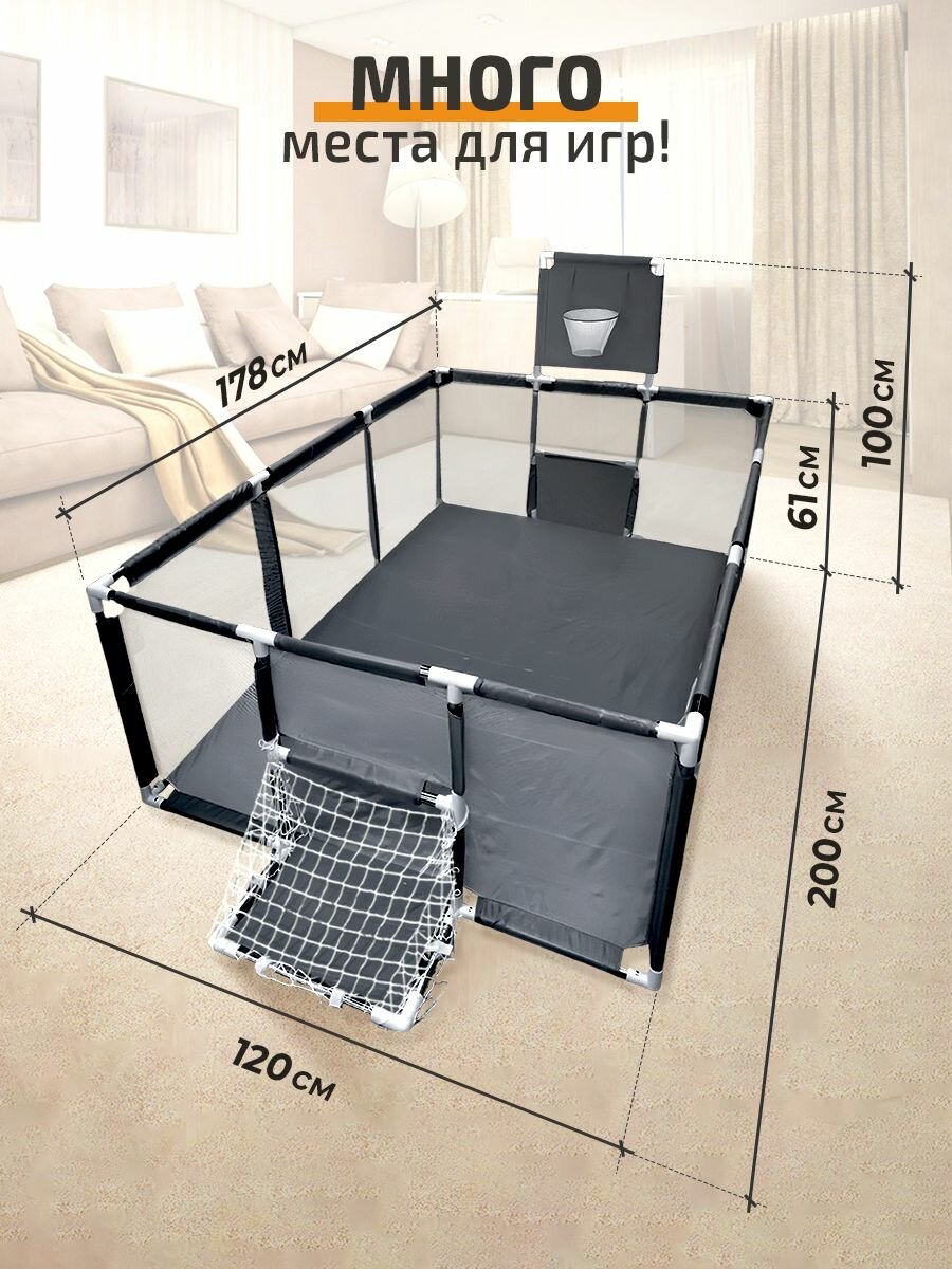 Манеж детский игровой большой усиленный складной 200*120*61 см для детей с баскетбольным кольцом и футбольными воротами информация: