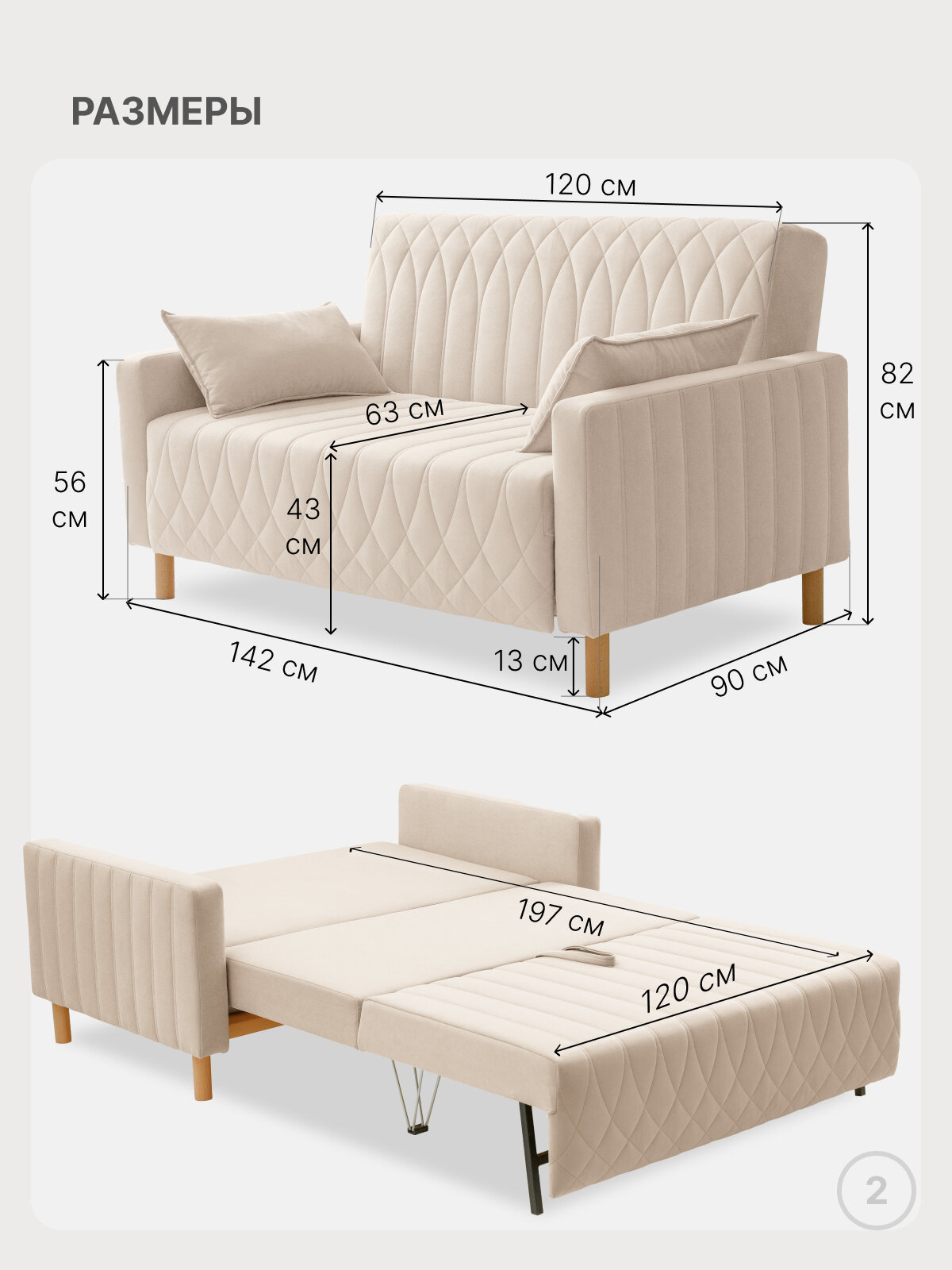 Диван раскладной прямой Майкл Лео 142х82х90 см, K5, диван кровать бежевая 197х120 см, механизм-односекционный МТД информация: