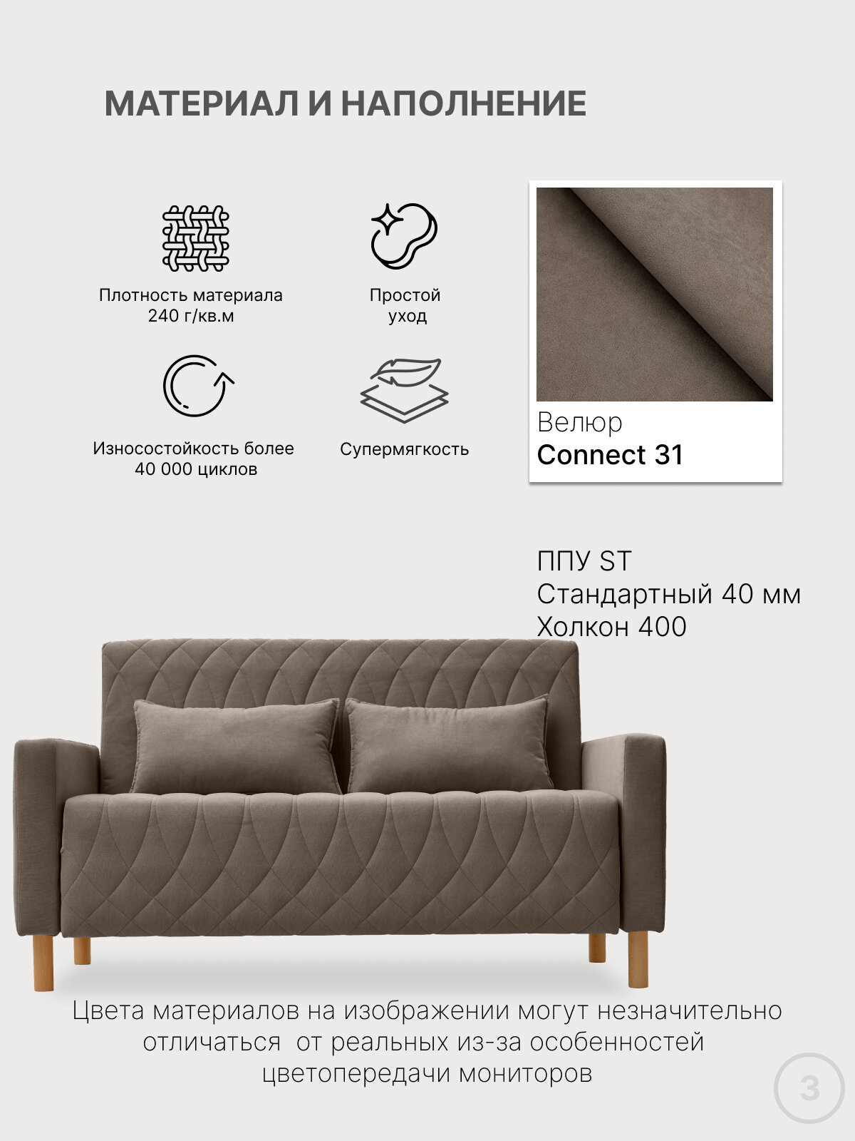 Диван раскладной прямой Майкл Лео 142х82х90 см, К31, диван кровать коричневый 197х120 см, механизм-односекционный МТД информация: