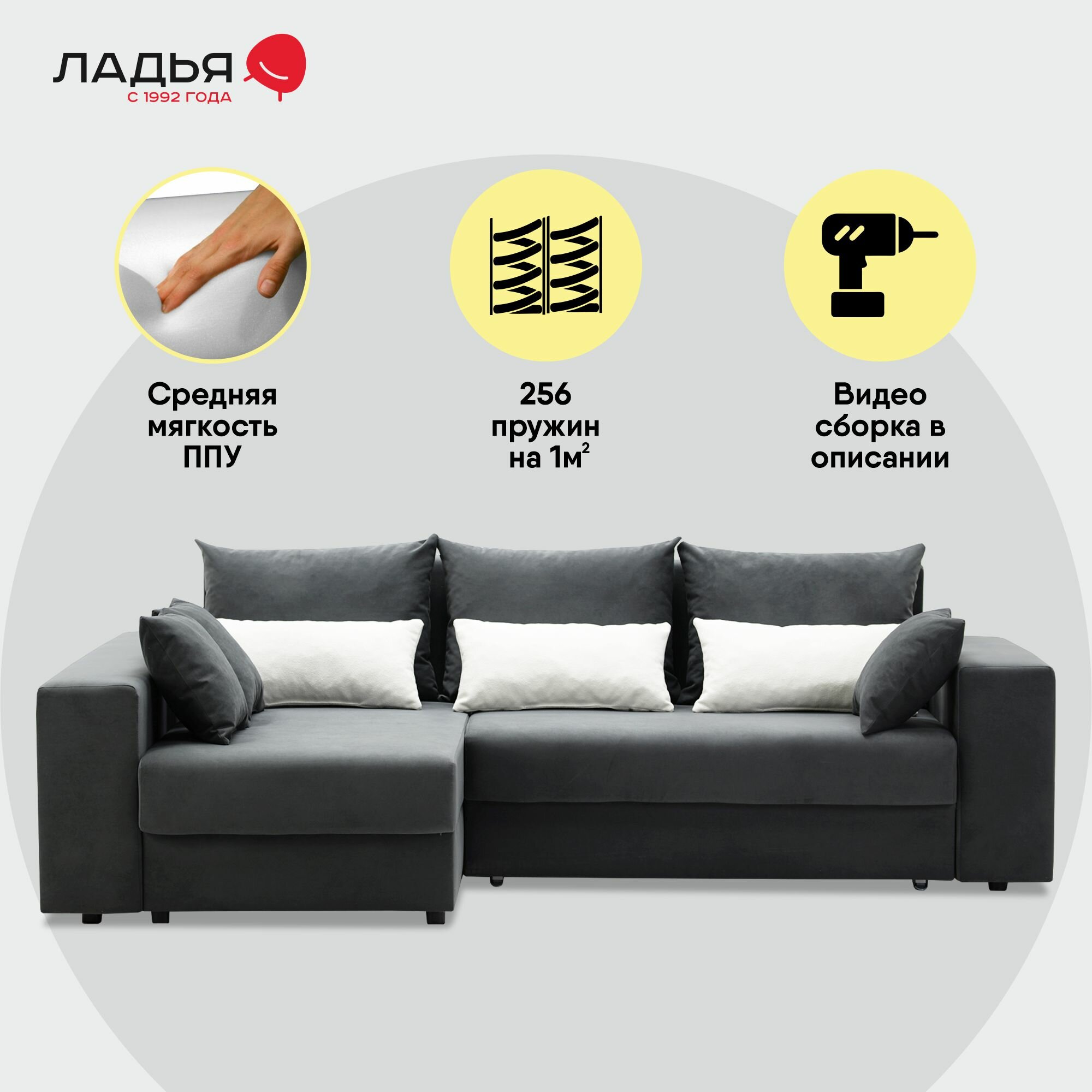 Угловой диван-кровать Майами, размер: 250х157х85 см, спальное место:200х140см, левый угол, Velutto 32 58 190 ₽