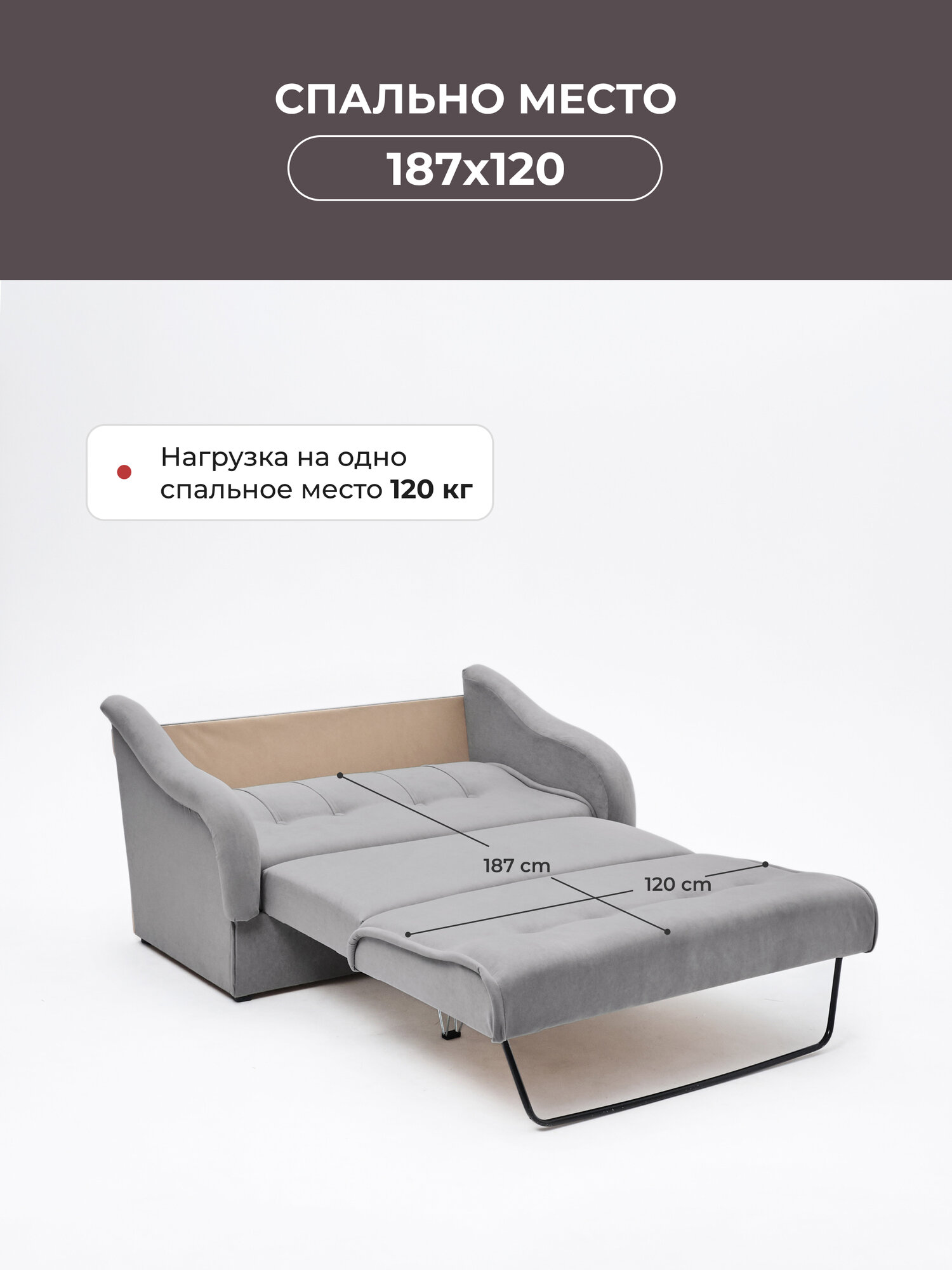 Диван-кровать раскладной двухспальный Тедди беспружинный, антивандальный велюр, размер 140*90*92, цвет серый информация: