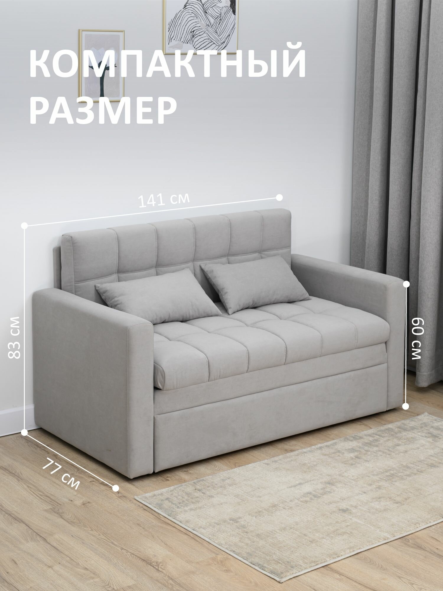 Диван-кровать раскладной 141x77x83 Romack Merlin Серый пух выкатной механизм с ящиками для хранения информация: