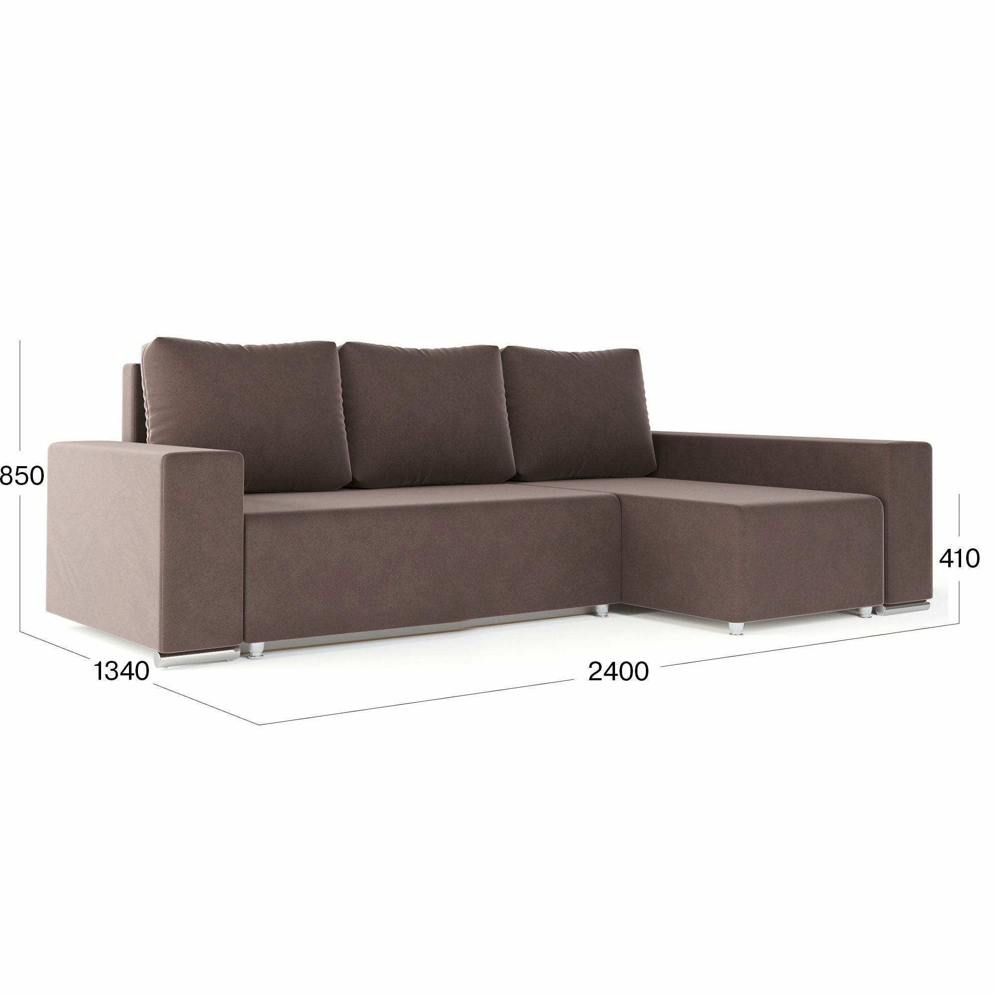 10 цен на Угловой диван-кровать Beneli техас с подушками, с ящиком для хранения, коричневый, велюр, механизм Еврокнижка, 240х134х85см, 1шт