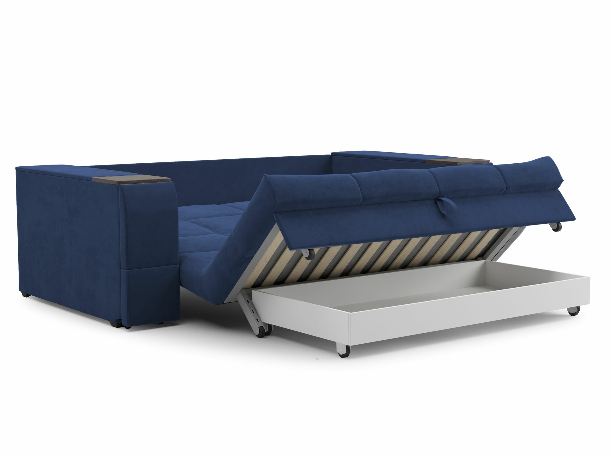 10 цен на Диван-аккордеон 160х200 темно-синий 785/ венге независимый пружинный блок, габарит 207 см со столиком и ящиком для белья